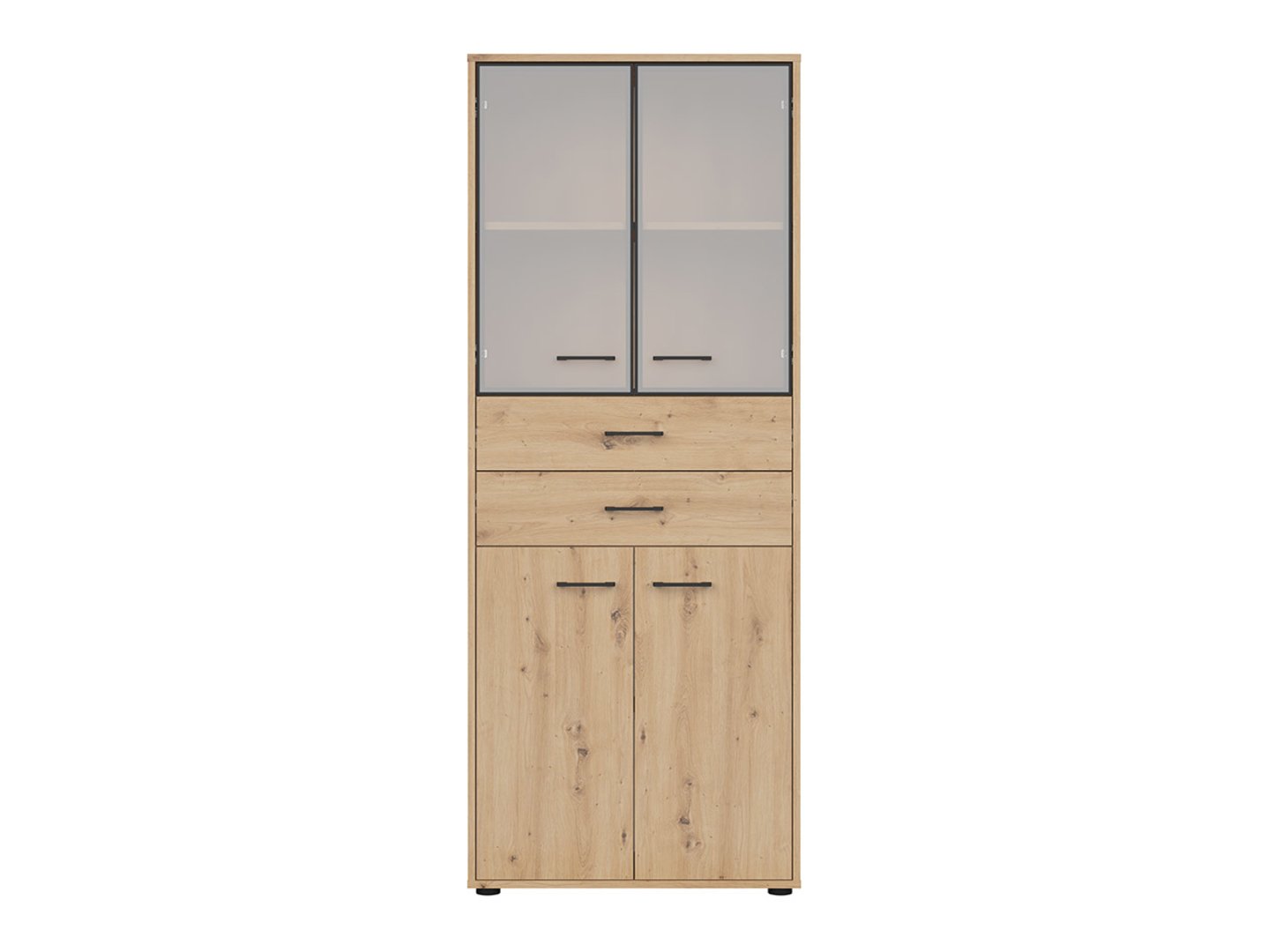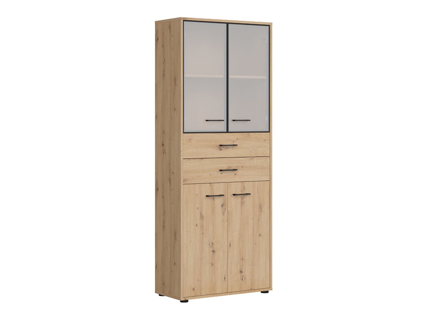 SPACE OFFICE dviejų durų vitrina su dviem stalčiais, 80 cm, meniško ąžuolo spalvos/matinės juodos spalvos