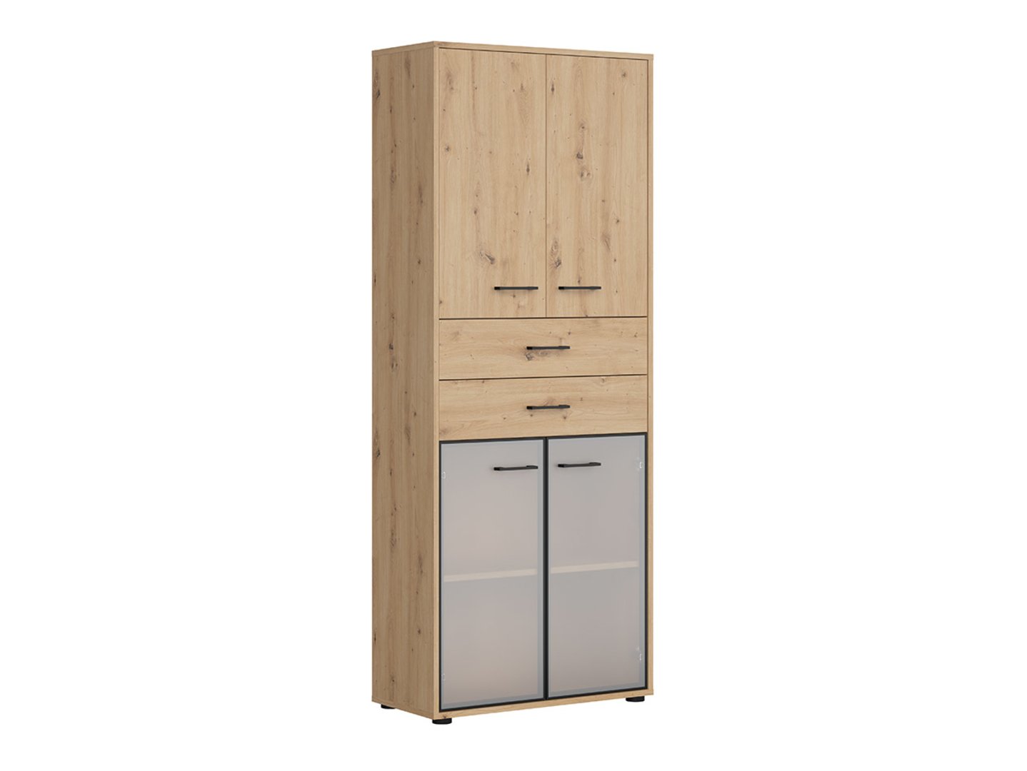 Be the first to review “SPACE OFFICE dviejų durų vitrina su dviem stalčiais, 80 cm, meniško ąžuolo spalvos/matinės juodos spalvos”