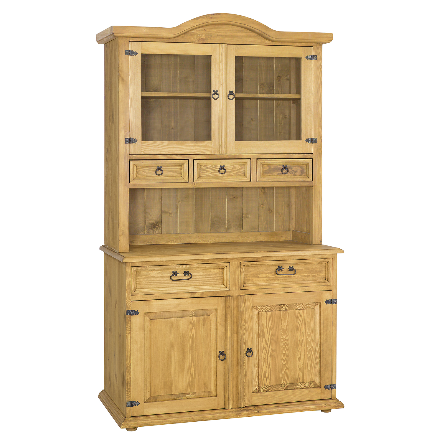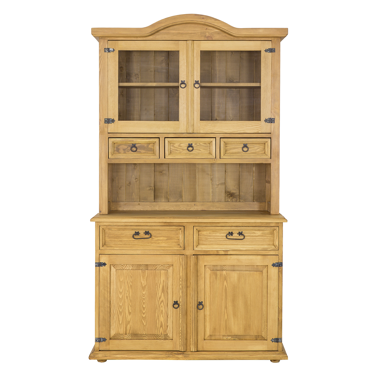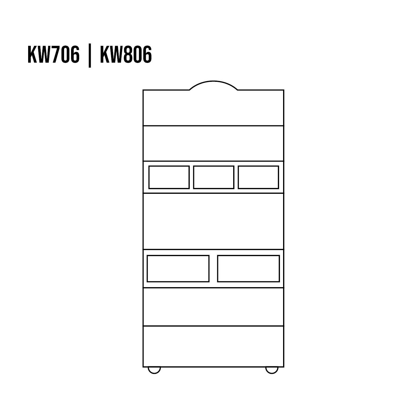 The KW706 SLIM waxed display cabinet/sideboard, designed in a rustic style, is crafted entirely from solid pine. It consists of two main elements: a chest of drawers and a top unit. Inside the two-door chest of drawers is a practical shelf. Beneath the top are two drawers that slide out on wooden runners. The top unit consists of two glazed outer doors, behind which there is a shelf. Beneath the doors are three small drawers. The top of the top unit is finished with a semi-arc-shaped crown. This piece boasts a durable and sturdy construction. Handmade metal handles and hinges with an aged effect were used in its production. A display cabinet/sideboard doesn’t have to be associated exclusively with the kitchen. It can be incorporated into any room. In the living room, it can serve as a bar, in the dining room, it can be used to store cutlery and tableware, and in the bedroom, it can hold bedding and towels. The KW706 display cabinet/sideboard will add a unique atmosphere to any interior, full of warmth and family atmosphere. Its functionality will make storage much easier.