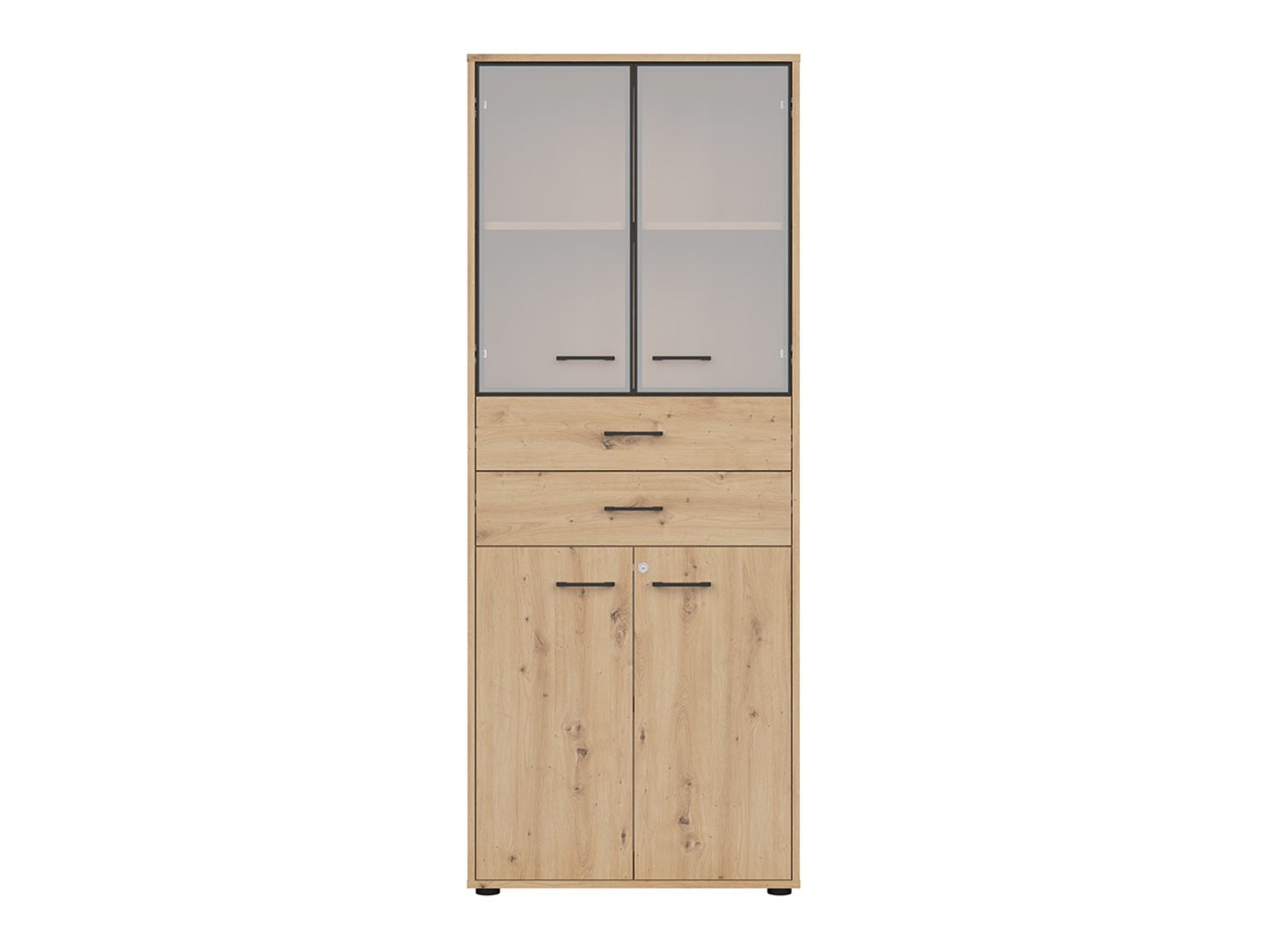 Uždara dviejų durų vitrina su dviem stalčiais SPACE OFFICE 80 cm, meniško ąžuolo spalvos/matinės juodos spalvos