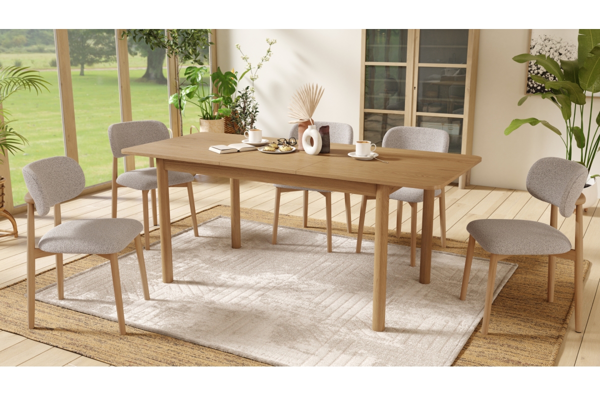 Moderni ALDO kėdė sujungia lengvą formą ir tvirtą meistriškumą. Stabili, tvirto ąžuolo konstrukcija suteikia jai elegantišką, natūralią išvaizdą ir ilgaamžiškumą, o apvali atlošas ir minkšta sėdynė užtikrina aukštą komfortą.