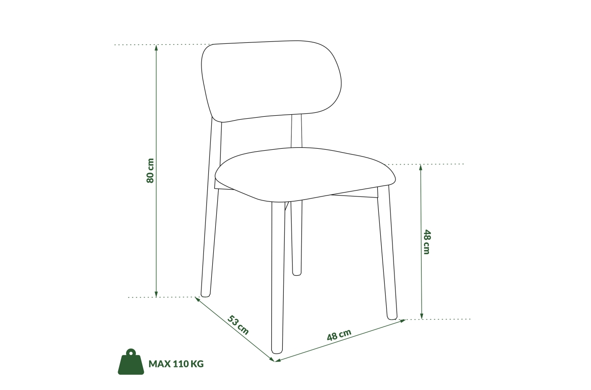 Kėdė aptraukta itin patvariu, dėmėms atspariu apmušalu, todėl idealiai tinka tiek namams (virtuvėms, valgomiesiems ir svetainėms), tiek komercinėms erdvėms, tokioms kaip restoranai ir kavinės.