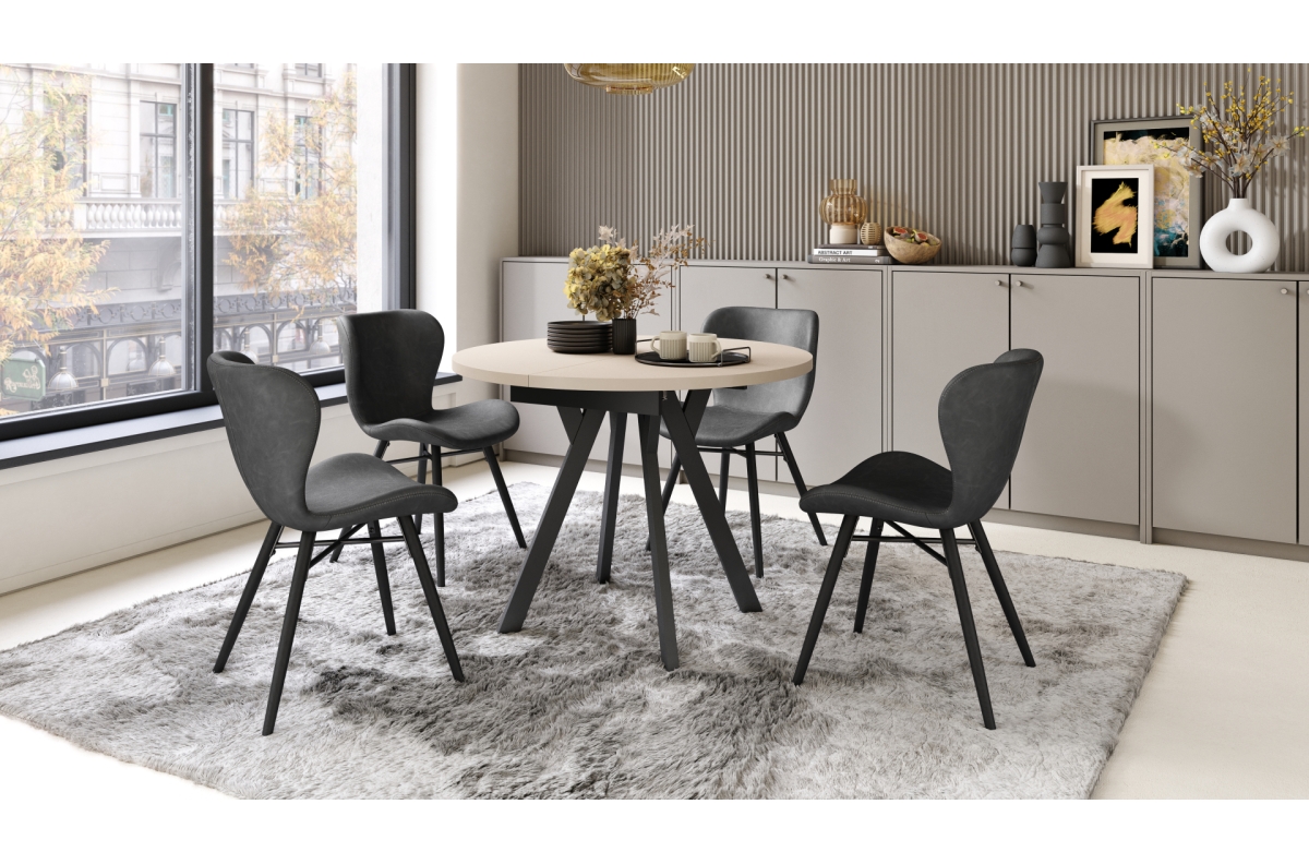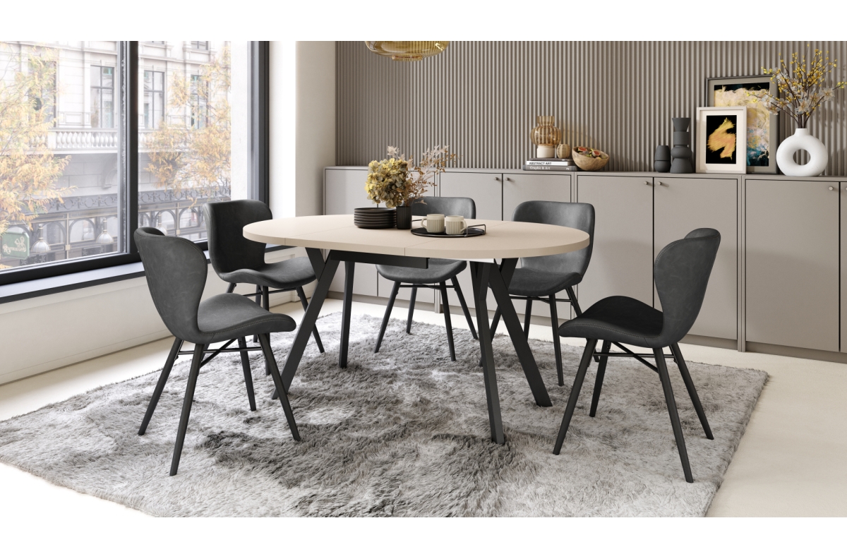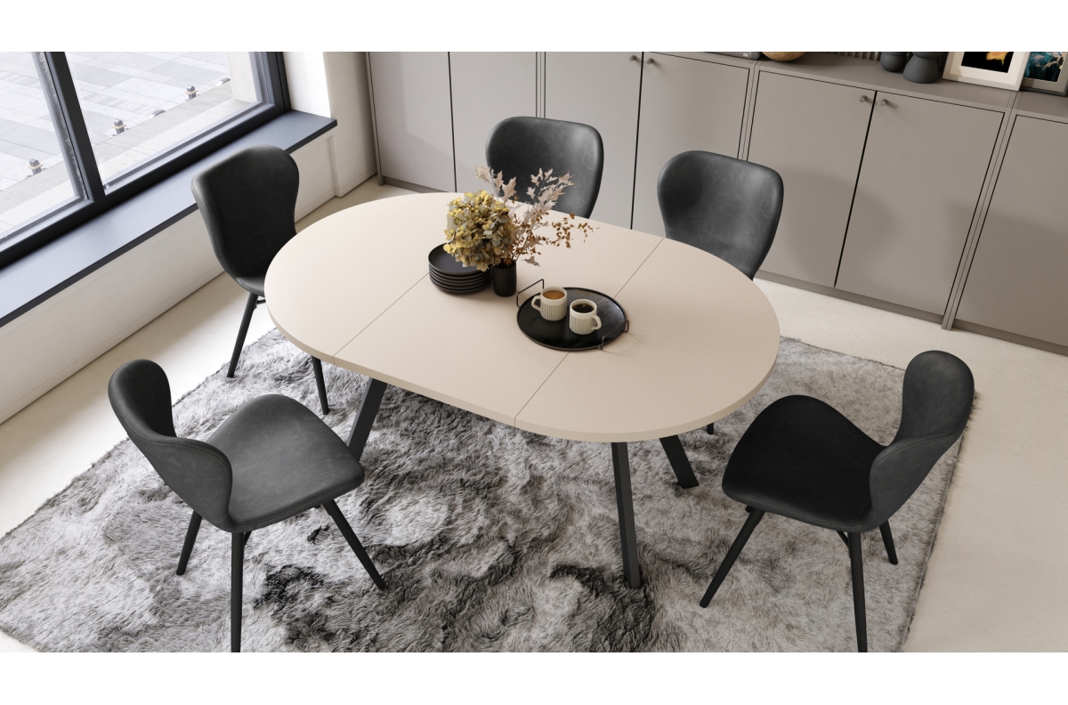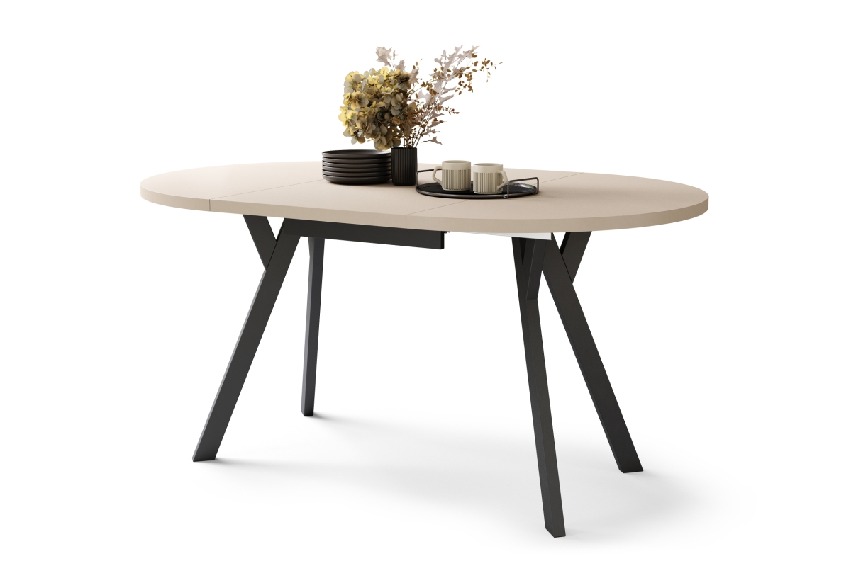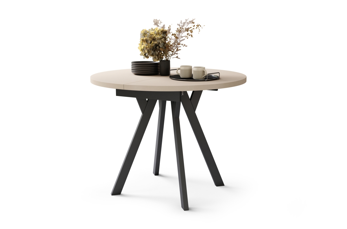 ALDO Smėlio/juodos kojos – APVALUS IŠTRAUKIAMAS STALAS SU Y FORMOS KOJOMIS, LOFT/INDUSTRIAL, SVETAINEI/VALGOMAJAM