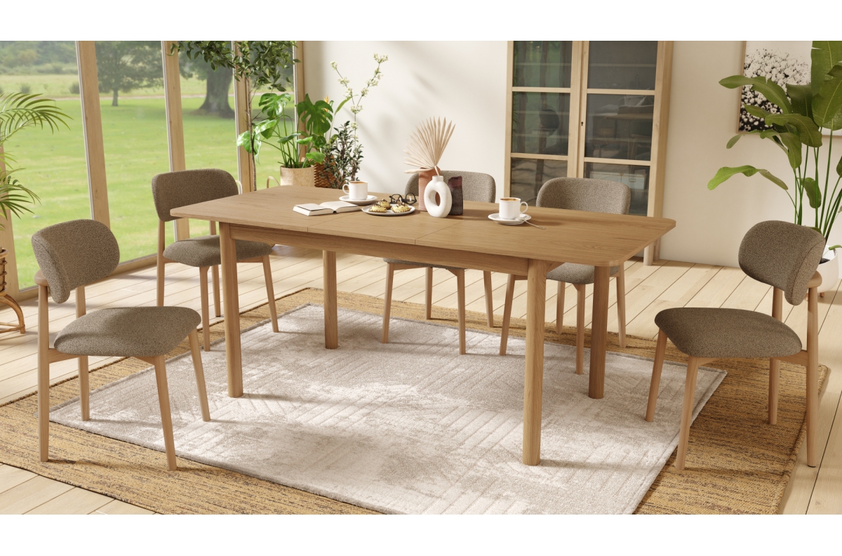 Moderni ALDO kėdė sujungia lengvą formą ir tvirtą meistriškumą. Stabili, tvirto ąžuolo konstrukcija suteikia jai elegantišką, natūralią išvaizdą ir ilgaamžiškumą, o apvali atlošas ir minkšta sėdynė užtikrina aukštą komfortą.