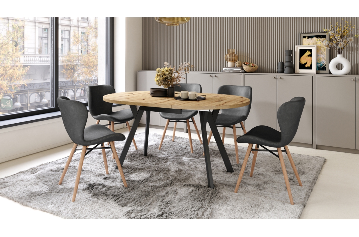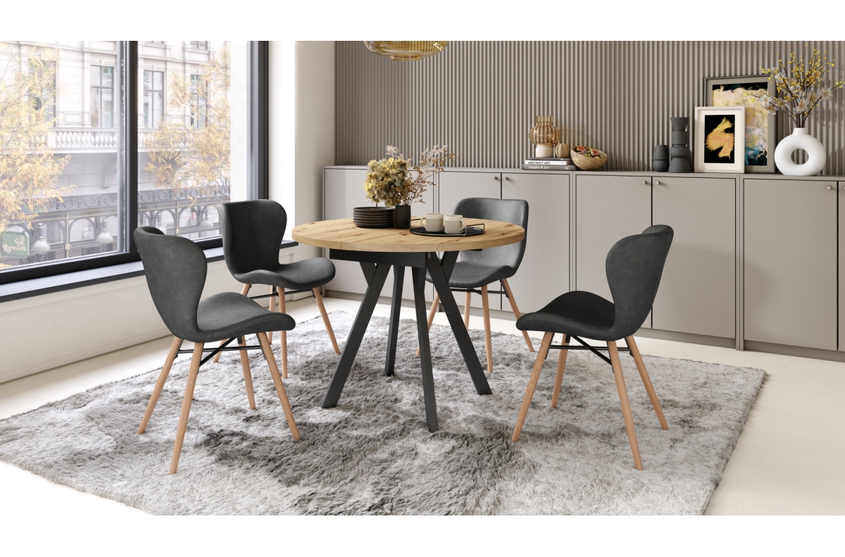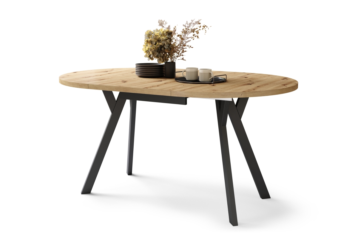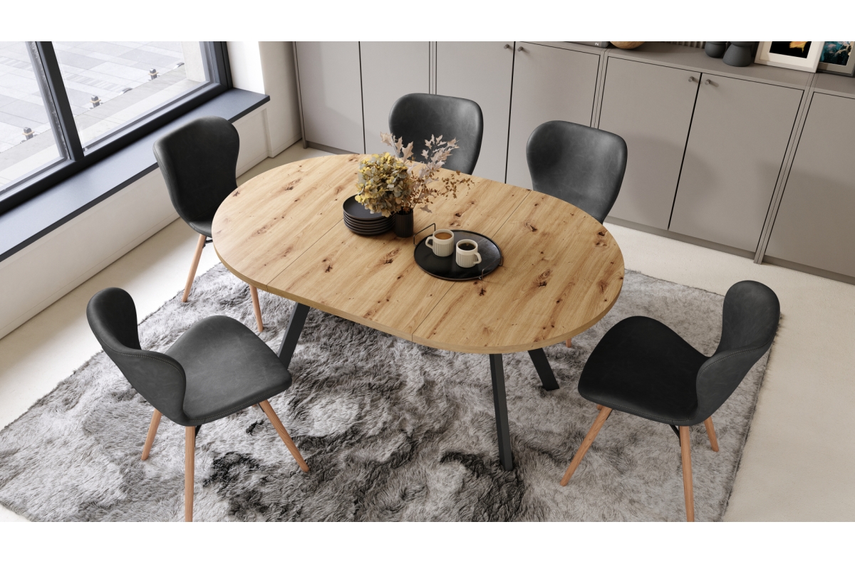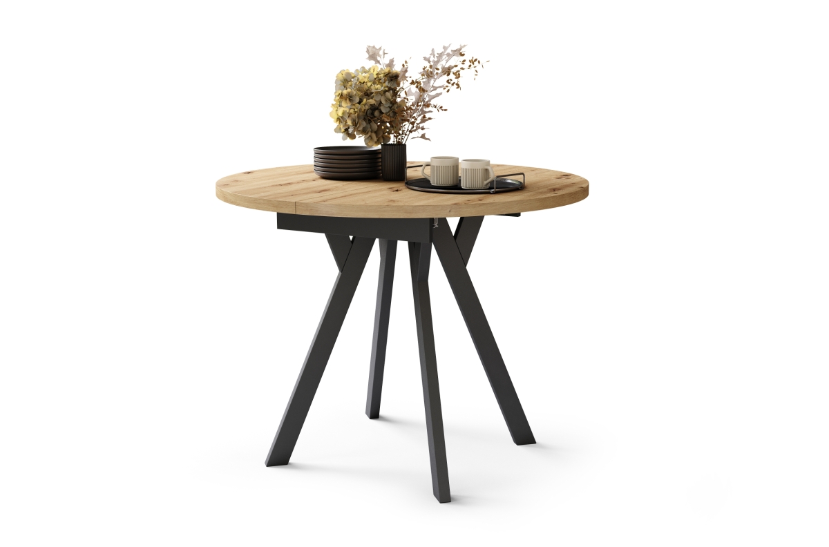 ALDO Artisan ąžuolo/juodos kojos – apvalus ištraukiamas stalas su Y formos kojomis, LOFT/INDUSTRIAL, SVETAINEI/VALGOMAJAM