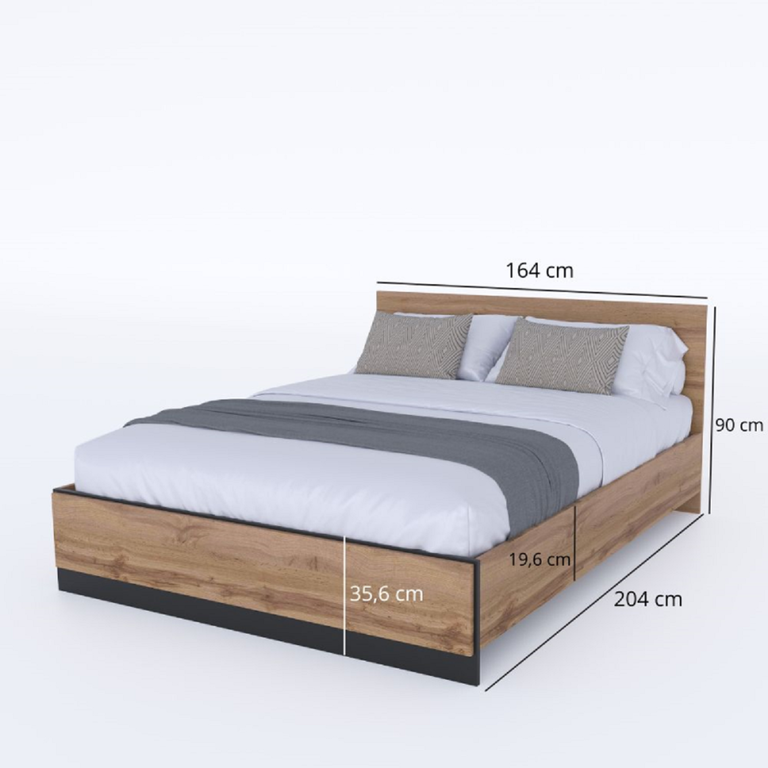Aukštis cm: 90, plotis cm: 164, ilgis cm: 204, čiužinio pagrindo matmenys cm: 160 × 200, čiužinys įskaičiuotas: ne, rėmas įskaičiuotas: ne, daiktadėžė: ne, savaiminis surinkimas: taip