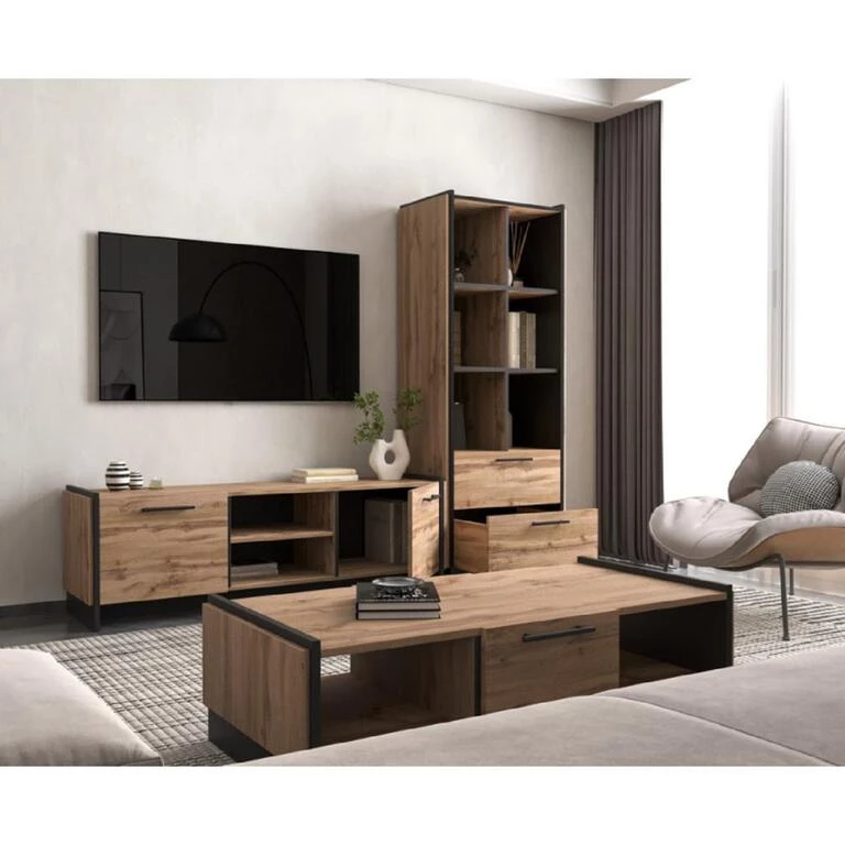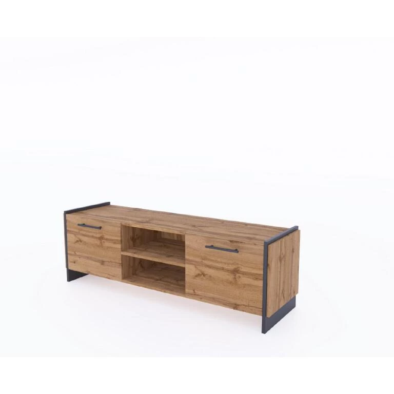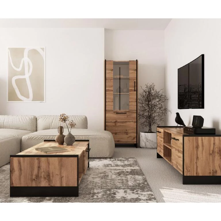 Modernus ir elegantiškas AMINO 2-D televizoriaus staliukas – tai tobulas stiliaus, funkcionalumo ir tvirtos meistriškumo derinys. Jo dizainas sujungia šiltą Wotano ąžuolo atspalvį su sodria juoda spalva, sukurdamas unikalaus charakterio baldą, kuris puikiai dera prie modernaus, industrinio ir lofto stiliaus interjero.