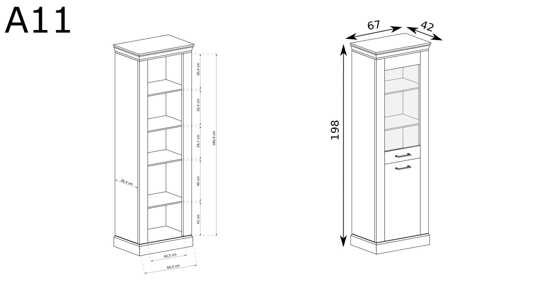 Atraskite unikalų „Antica“ kolekcijos stilių, kurio centre – elegantiška „Kraft Gold“ vienų durelių vitrina. Tai puikus baldas visiems, ieškantiems estetikos ir funkcionalumo derinio. 198 cm aukščio ir 67 cm pločio spintelė puikiai tinka įvairiems interjerams, suteikdama elegancijos ir klasės. Pagaminta iš aukštos kokybės laminuotos „Kraft Gold“ spalvos plokštės, vitrina jūsų interjerui suteiks šilumos ir jaukumo. „Antica“ vitrina yra ne tik vizualinis akcentas, bet ir erdvus baldas, kuriame tilps jūsų mėgstamiausi daiktai. Vienoje iš spintelių su tvirtu priekiu yra lentyna, o kitoje, su grūdinto stiklo priekiu, yra dvi papildomos lentynos, skirtos gražiems aksesuarams, knygoms ar elegantiškiems stalo įrankiams eksponuoti. Tai leidžia sukurti unikalų išdėstymą, kuris pritrauks kiekvieno svečio dėmesį. Matinės tekstūros ir skaidraus stiklo derinys sukuria stulbinantį įspūdį! Išskirtinės metalinės rankenėlės puikiai papildo visą dizainą, suteikdamos vitrinai modernumo. Jų sidabrinė spalva subtiliai kontrastuoja su dominuojančia auksine spalva, traukia akį ir suteikia rafinuotumo. Be to, švelniai užsidarančios durelės leidžia šią vitriną patogiai ir komfortiškai naudoti kasdien.