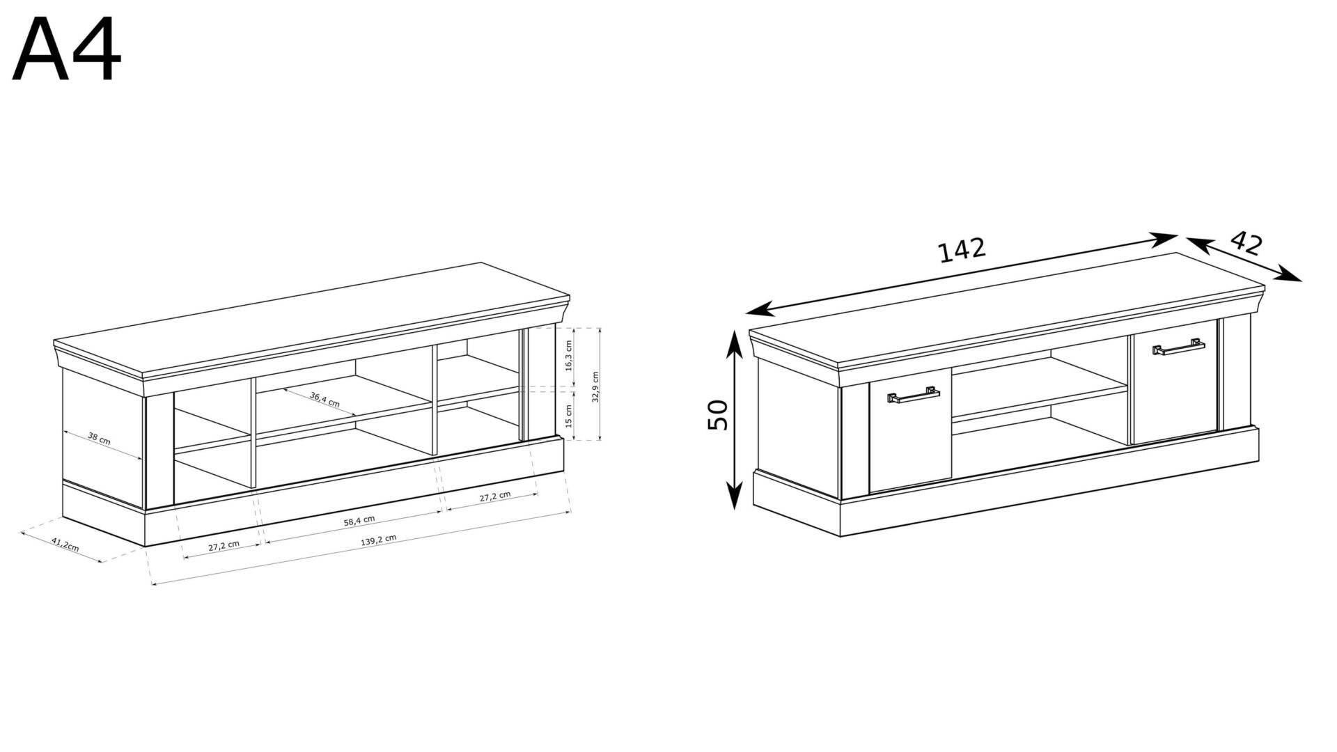 Atraskite „Antica-4“ televizoriaus spintelę, sukurtą galvojant apie elegantišką ir modernų interjerą. Unikalus dizainas derina funkcionalumą ir estetiką, todėl tai idealus sprendimas tiek svetainei, tiek miegamajam. Dėl kruopščiai parinktų spalvų ir medžiagų spintelė derės prie bet kokios aplinkos, suteikdama jai unikalumo. Šios spintelės centrinis elementas – erdvi lentyna, puikiai tinkanti mėgstamiems daiktams ir dekoracijoms eksponuoti. Tai puiki vieta televizoriui ar dekoderiui, kuris puikiai papildys bendrą dizainą. Spintelės šonuose yra praktiškos spintelės su lentynomis, kurios suteikia papildomos vietos daiktams susidėti ir leidžia pilnai išnaudoti turimą erdvę. „Antica-4“ išskiria ne tik dizainas, bet ir detalės. Metalinės rankenos suteikia modernumo, o švelniai užsidarančios spintelės – elegancijos ir komforto. Jums nebereikės jaudintis dėl triukšmo uždarant dureles – kiekviena sąveika su spintele bus sklandi ir maloni.