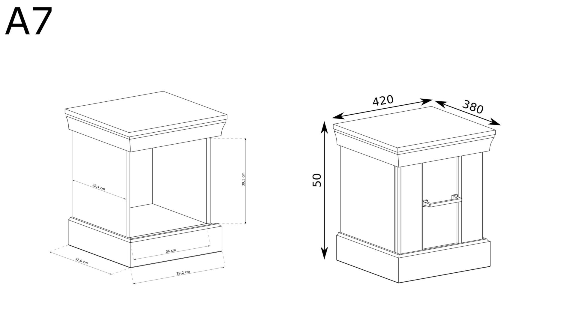 ANTICA-7 – „Kraft Gold“ vienerių durų naktinis staliukas derina praktiškumą ir eleganciją, puikiai papildydamas modernų interjerą. Pagamintas iš aukštos kokybės laminuotos plokštės, ryškios „Kraft Gold“ spalvos, jis yra ne tik funkcionalus, bet ir stilingas bet kurio miegamojo papildymas. Subtili estetika tikrai patrauks akį ir suteiks bet kuriam kambariui rafinuotumo. Šis naktinis staliukas, kurio plotis – 42 cm, aukštis – 50 cm, o gylis – 38,5 cm, buvo sukurtas atsižvelgiant į maksimalų praktiškumą. Dėl didelių matmenų jis puikiai tinka net mažesnėms erdvėms, todėl galite efektyviai išnaudoti erdvę aplink lovą. Tai užtikrina, kad visada turėsite po ranka būtiniausius aksesuarus, tokius kaip stiklinė vandens, žadintuvas ar mėgstama knyga. Akį traukianti metalinė rankena ir švelniai užsidarančios durelės – tai detalės, suteikiančios šiam baldui rafinuotumo. Šis modernus dizainas leidžia naudotis naktiniu staliuku ne tik patogiai, bet ir tyliai bei diskretiškai, sukuriant ramią atmosferą jūsų miegamajame. Kiekvienas atidarymas ir uždarymas tampa malonumu, o ne vargais.