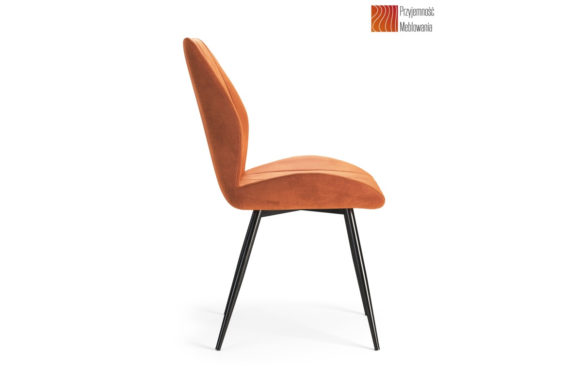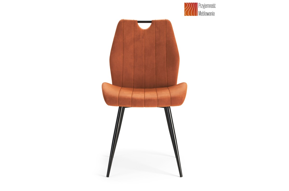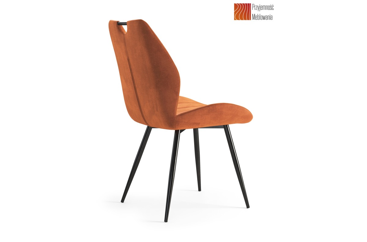 ARNO Cinnamon (Bluvel audinys 4215) – MODERNI APMUŠTA SVETAINĖS/VALGOMOJO KĖDĖ SU AKSOMINE RANKENA, ORANŽINĖS/RUDOS SPALVOS