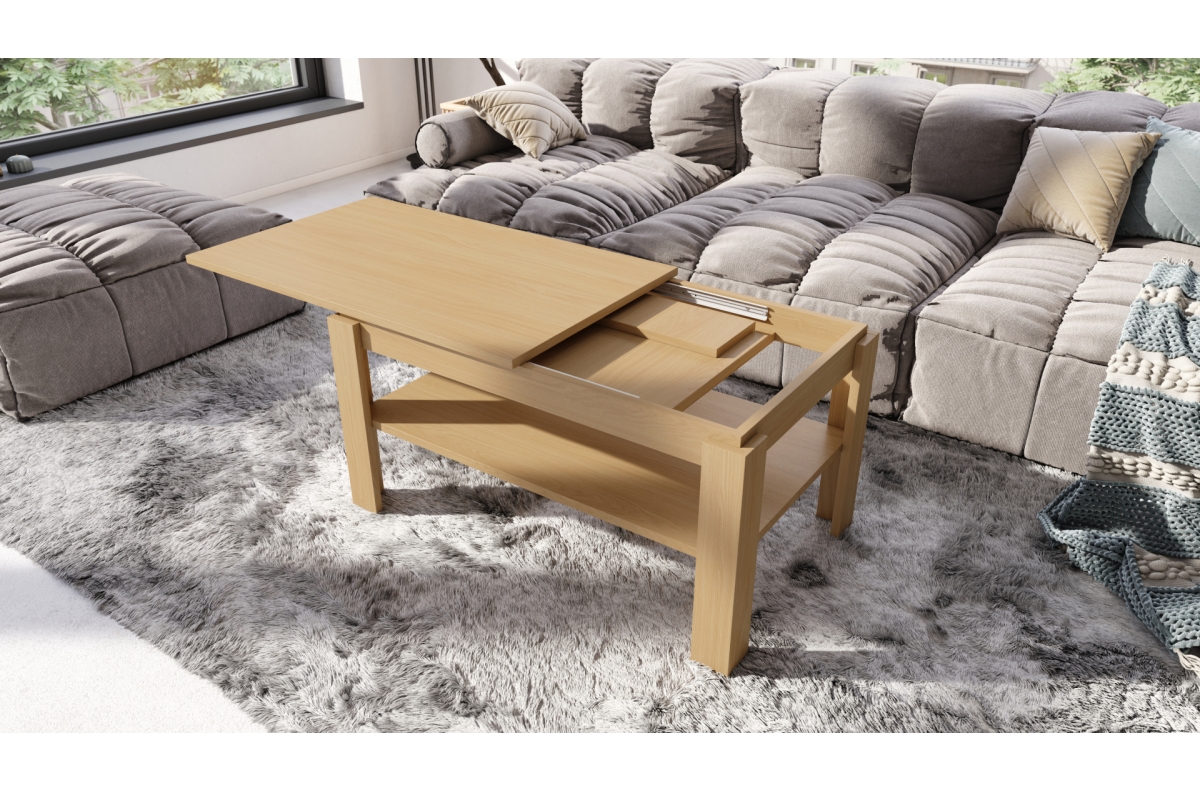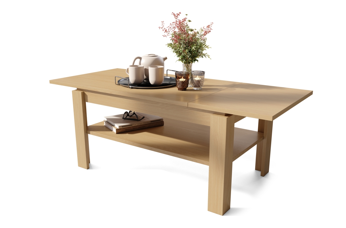 PLOTIS 100 cm / 140 cm, GYLIS 60 cm, AUKŠTIS 55 cm, ĮDĖKLŲ SKAIČIUS 1 vnt. x 40 cm (paslėpta po stalviršiu), MEDŽIAGOS Medžio drožlių plokštė, FUNKCIJA Ištraukiamas stalviršis, PAVIRŠIUS Matinis, STILIUS Modernus, SVORIS SU PAKUOTE 29 kg