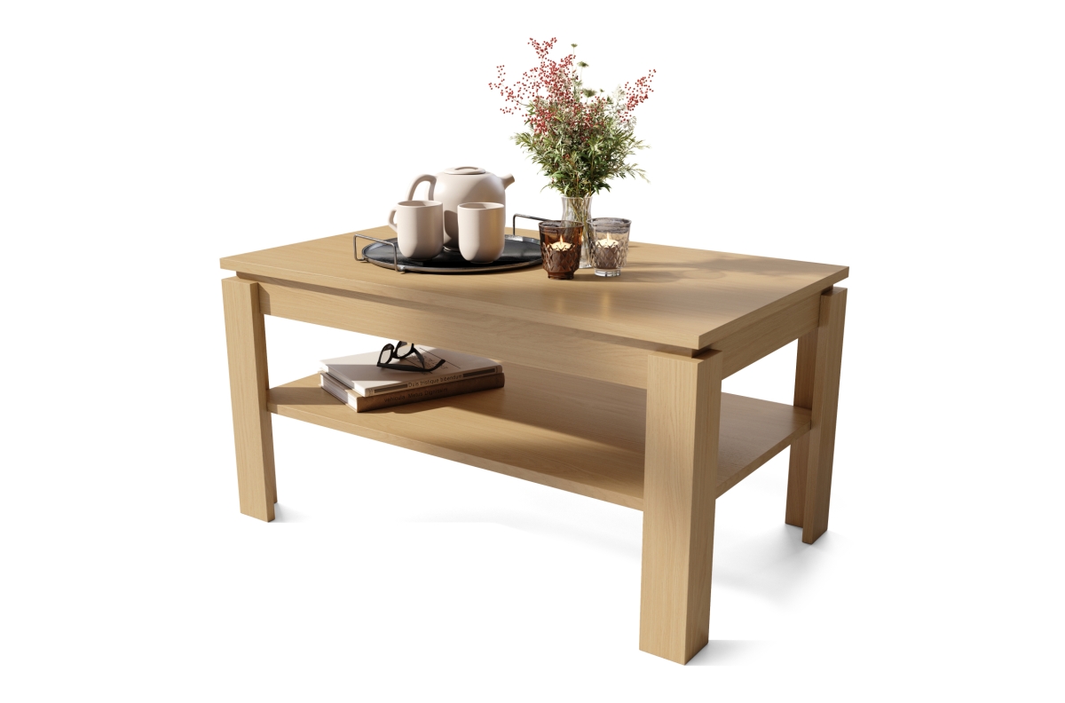 Kavos staliukas pagamintas iš aukštos kokybės, 18 mm storio, matinės medžio drožlių plokštės, laminuotos iš abiejų pusių, su 1 mm ABS kraštais. Matmenys ir svoris pakuotėje: 110 x 64 x 9,5 cm (29 kg)