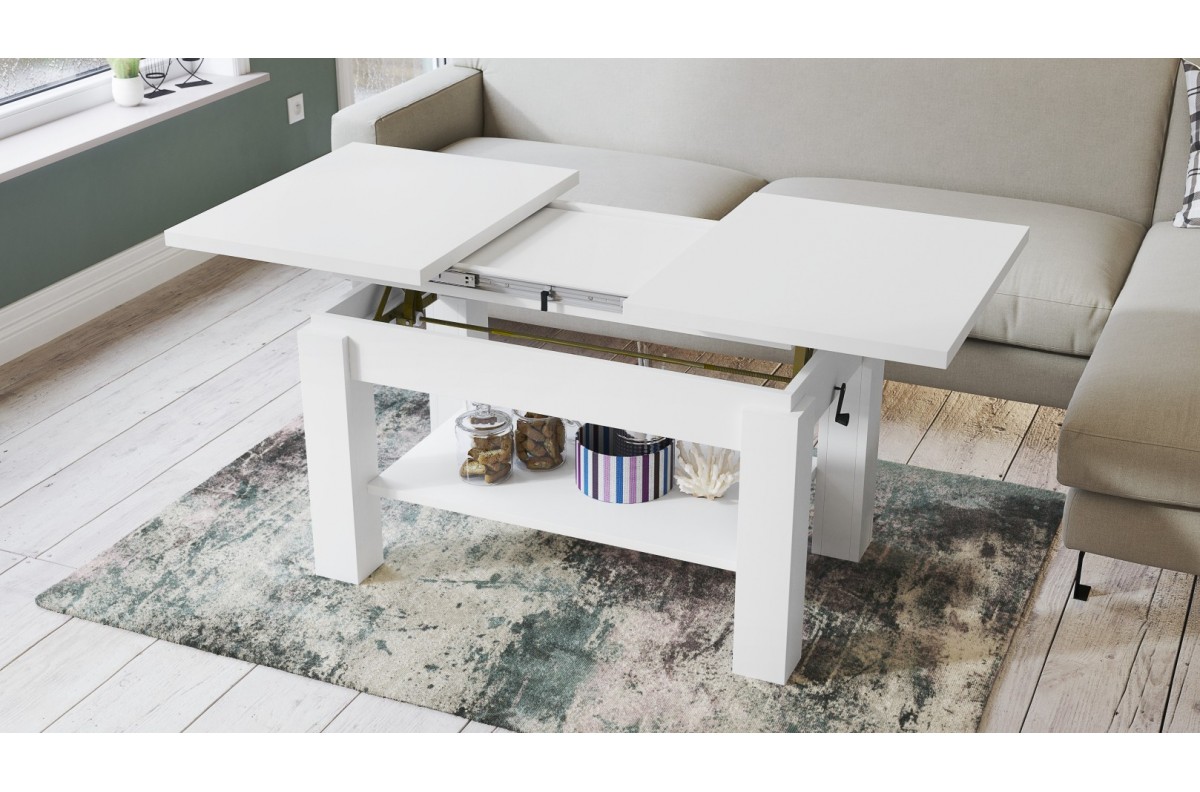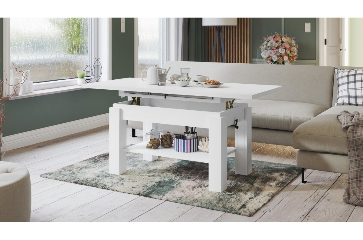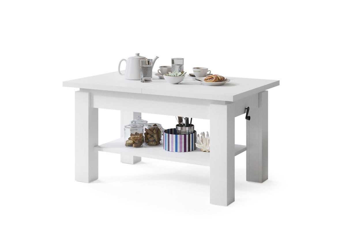 ASTORIA matinės baltos spalvos – sulankstomas kavos staliukas su lentyna