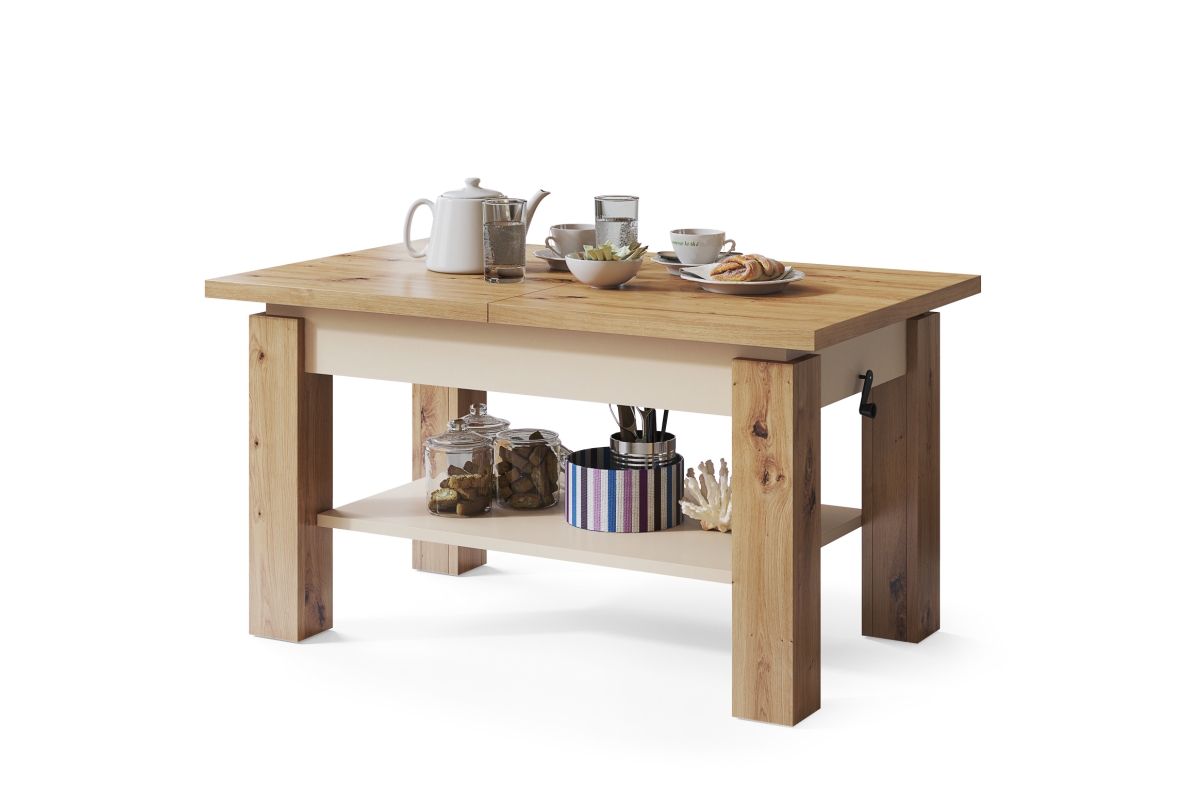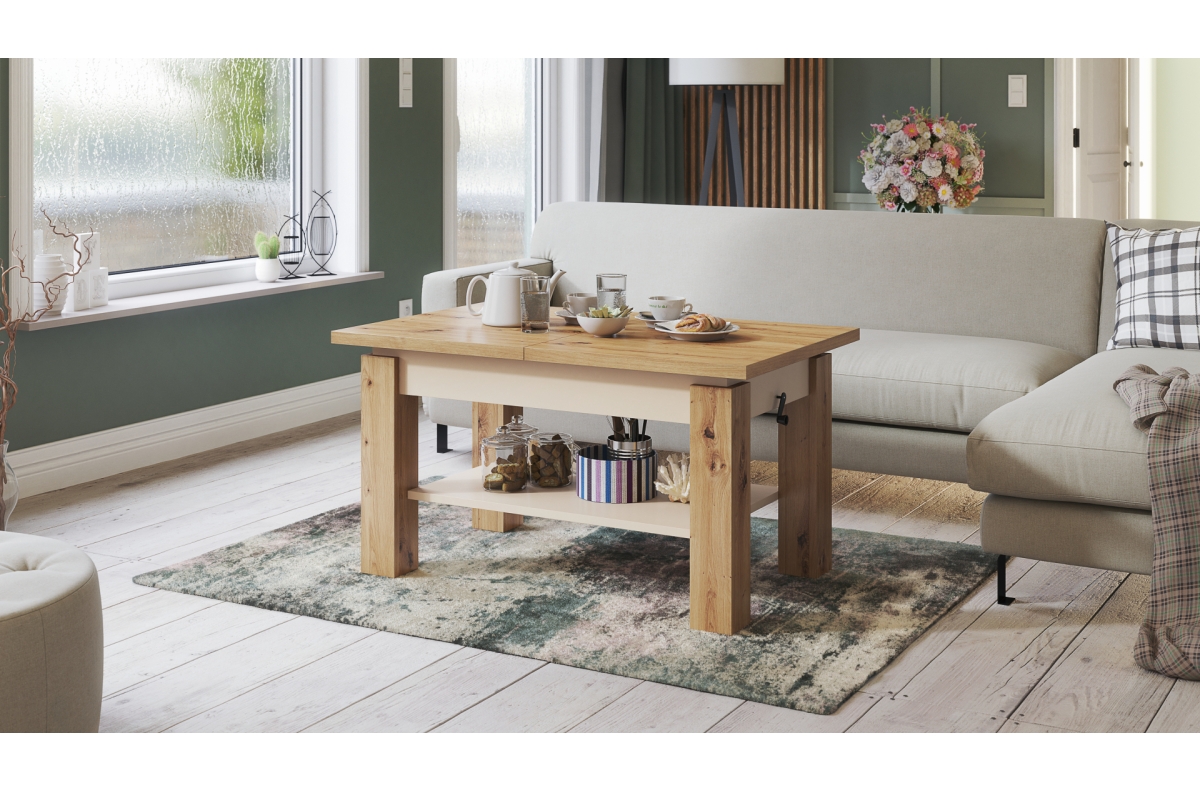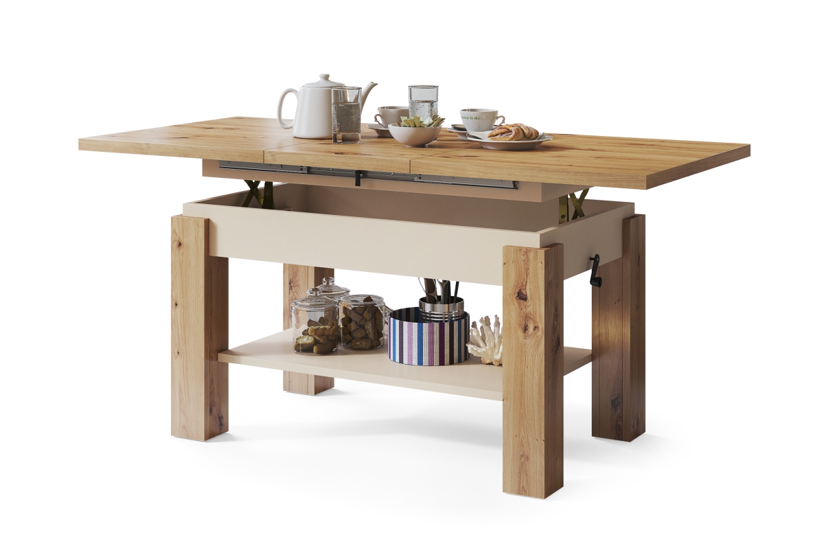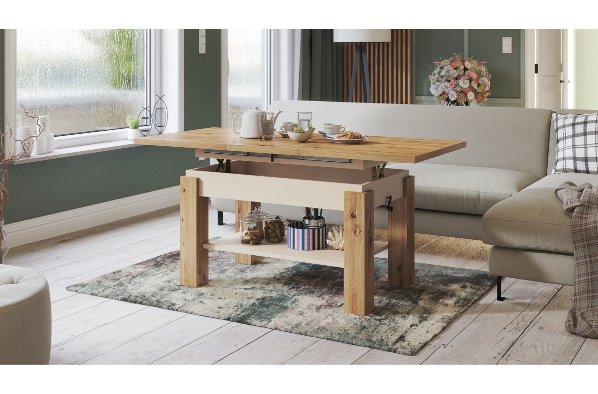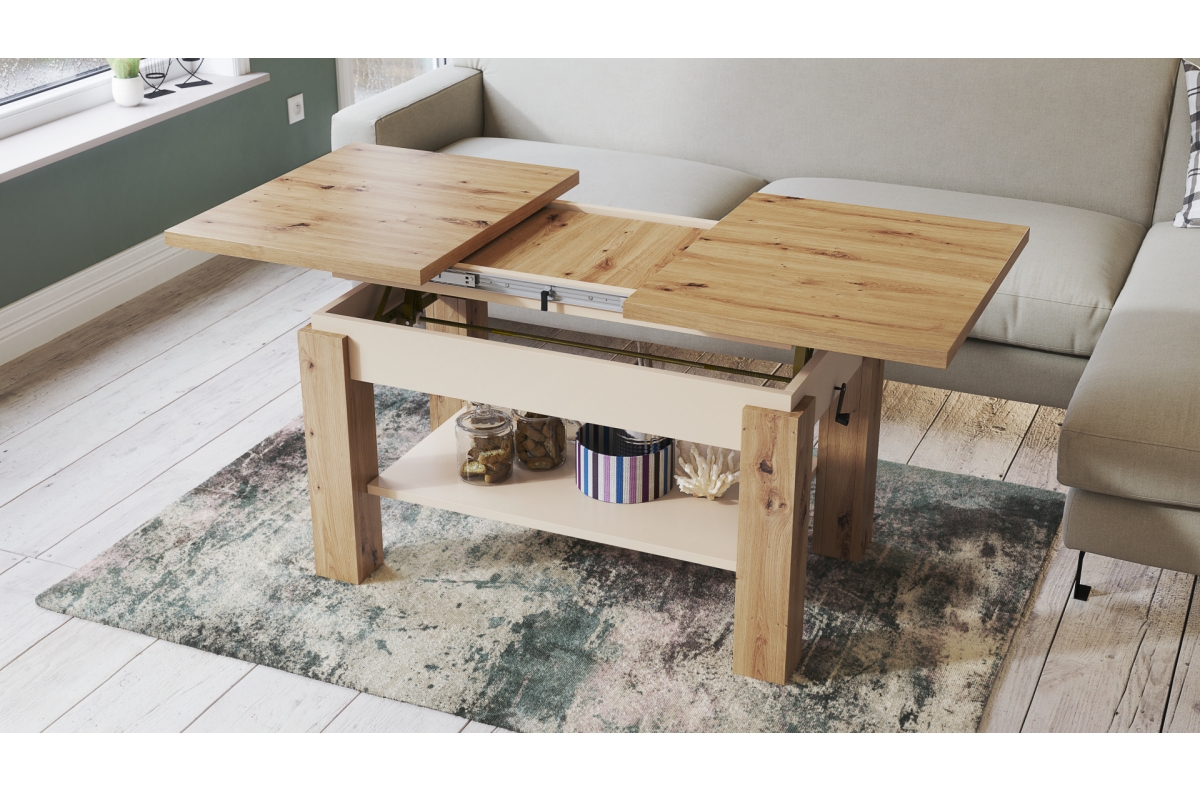 ASTORIA Artisan ąžuolo/smėlio spalvos (šampano spalvos) – IŠPLĖSTAMAS PAKELIAMAS SUOLAS SU LENTYNA