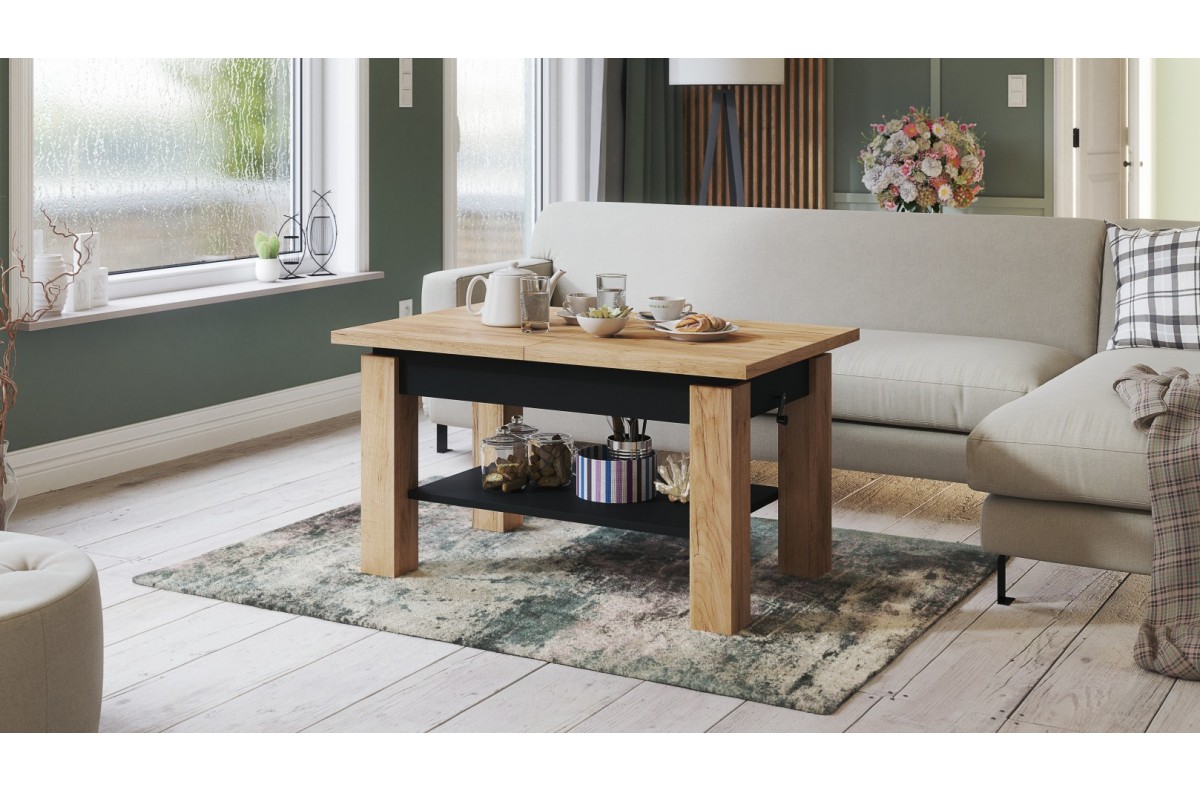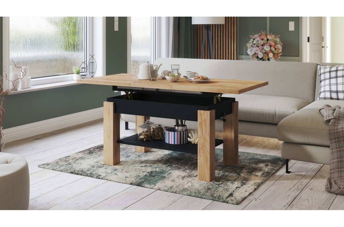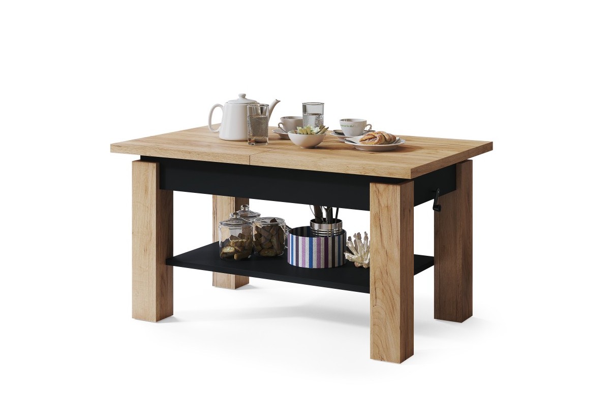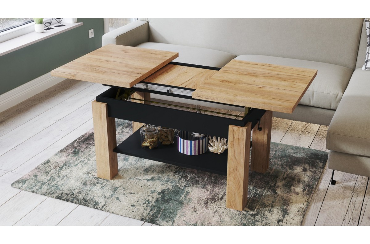 ASTORIA Craft ąžuolo aukso/matinės juodos spalvos – SULANKSTOMAS PAKELIAMAS KAVOS STALIUKAS SU LENTYNA
