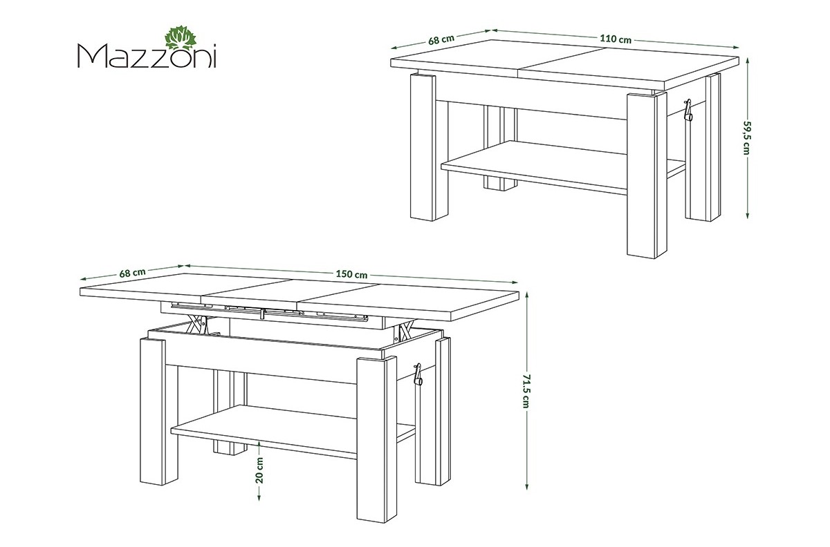 PLOTIS 110 cm / 150 cm, GYLIS 68 cm REGULIUOJAMAS, AUKŠTIS 59,5–71,5 cm, ĮDĖKLŲ SKAIČIUS 1 vnt. x 40 cm (paslėpta po stalviršiu), STALVIRŠIO FORMA Stačiakampis, MEDŽIAGOS Medžio drožlių plokštė, PAVIRŠIUS Matinis, STILIUS Modernus, SVORIS SU PAKUOTE 48 kg