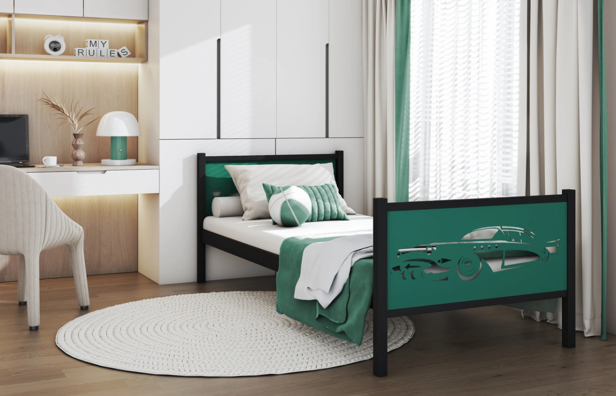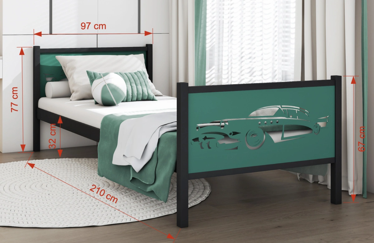 Metalinė lova, kurios miegamoji dalis 90 × 200 cm