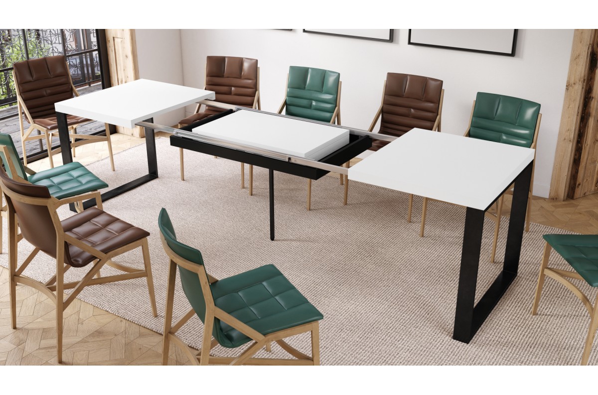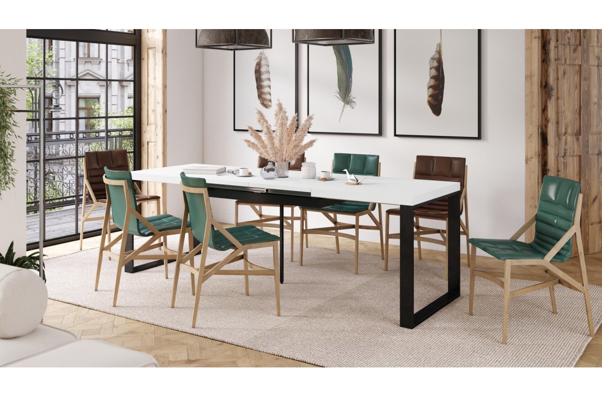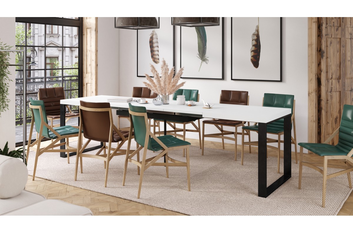 AVARI matinės baltos spalvos – palėpės stalas svetainei/valgomajam, prailginamas iki 270 arba 290 cm!