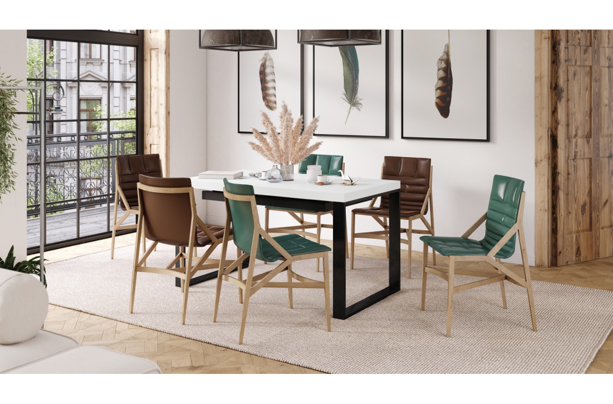 Papildomos savybės: juodos spalvos milteliniu būdu dažytos metalinės stalo kojos (kojos skerspjūvis: 8 x 2 cm) ir centrinė atraminė koja (pagaminta iš tos pačios medžiagos).
