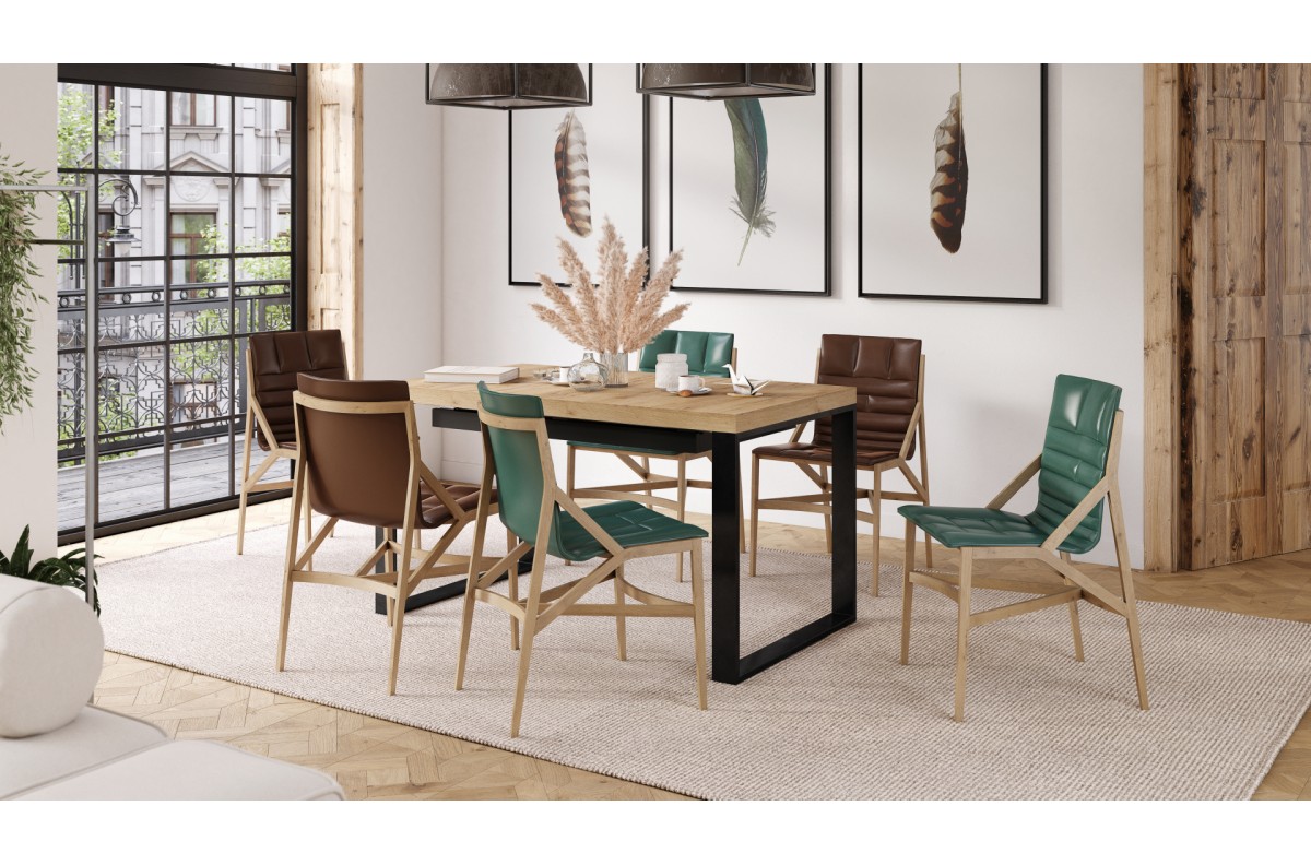 Papildomos savybės: juodos spalvos milteliniu būdu dažytos metalinės stalo kojos (kojos skerspjūvis: 8 x 2 cm) ir centrinė atraminė koja (pagaminta iš tos pačios medžiagos).