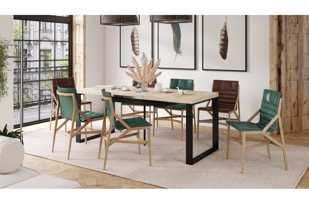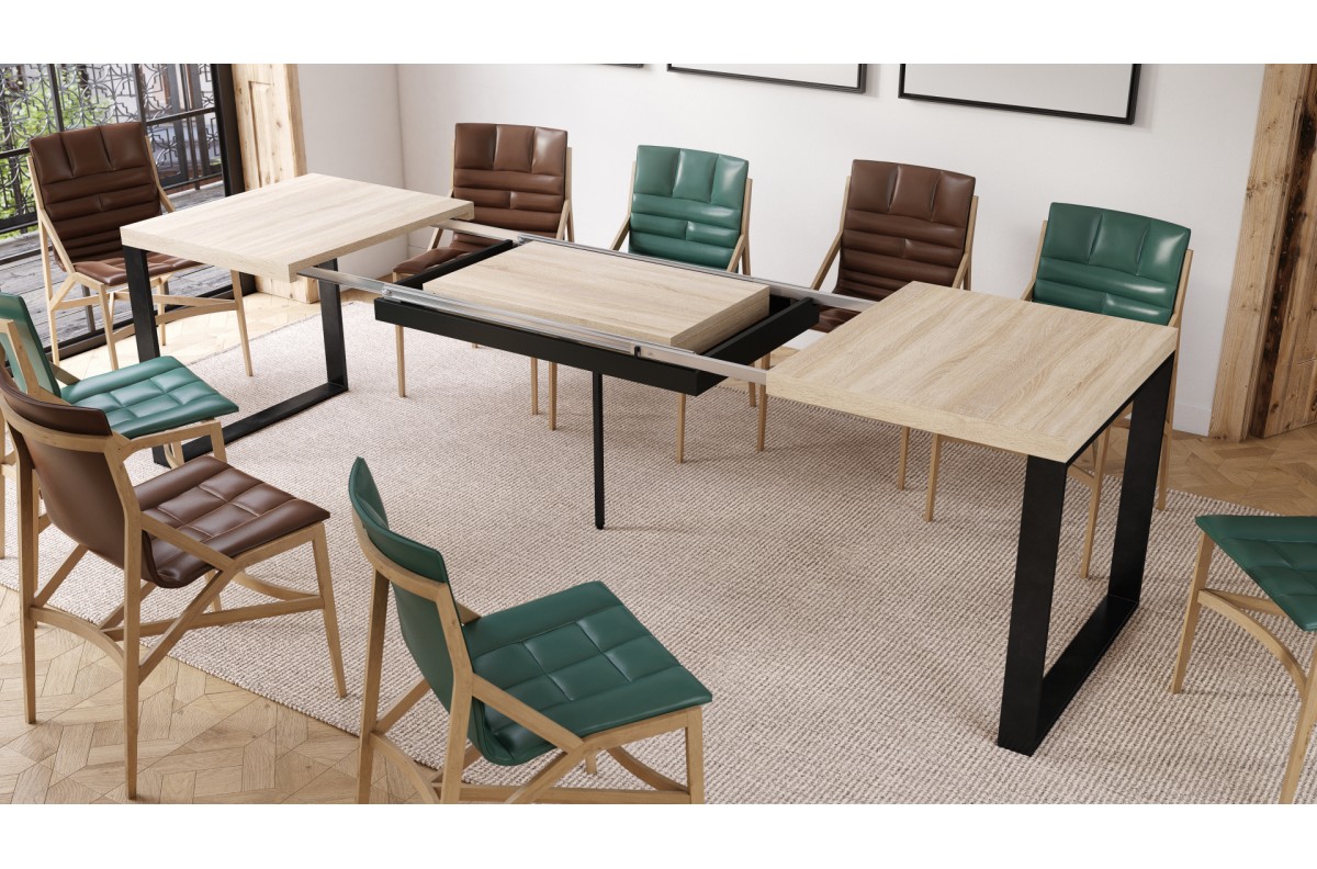 PLOTIS 140 arba 120 cm (priklausomai nuo pasirinkto dydžio), GYLIS 80 cm, AUKŠTIS 76 cm, ĮDĖKLŲ SKAIČIUS 3 vnt. x 50 cm (paslėpti po stalviršiu), FUNKCIJA Ištraukiamas stalviršis, PAVIRŠIUS Matinis, STILIUS Loft, SVORIS SU PAKUOTE 83 kg