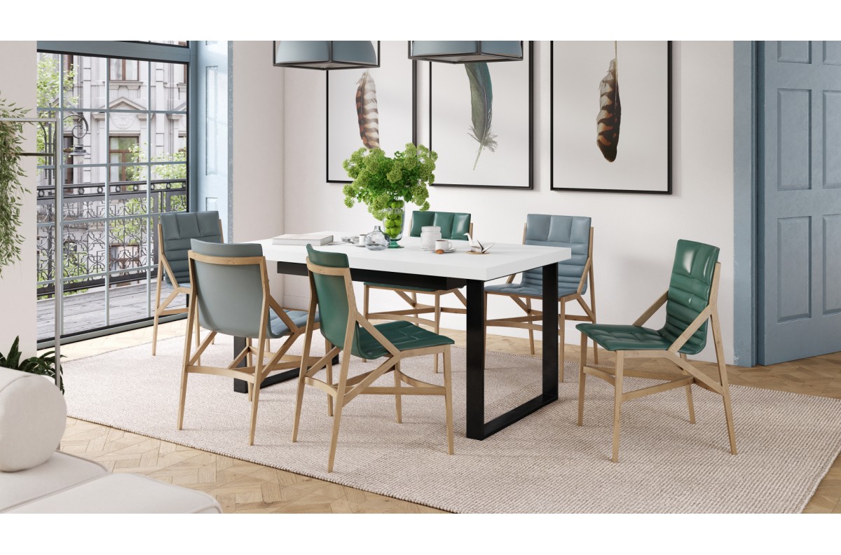 Papildomos savybės: juodos spalvos milteliniu būdu dažytos metalinės stalo kojos (kojos skerspjūvis: 8 x 2 cm) ir centrinė atraminė koja (pagaminta iš tos pačios medžiagos).