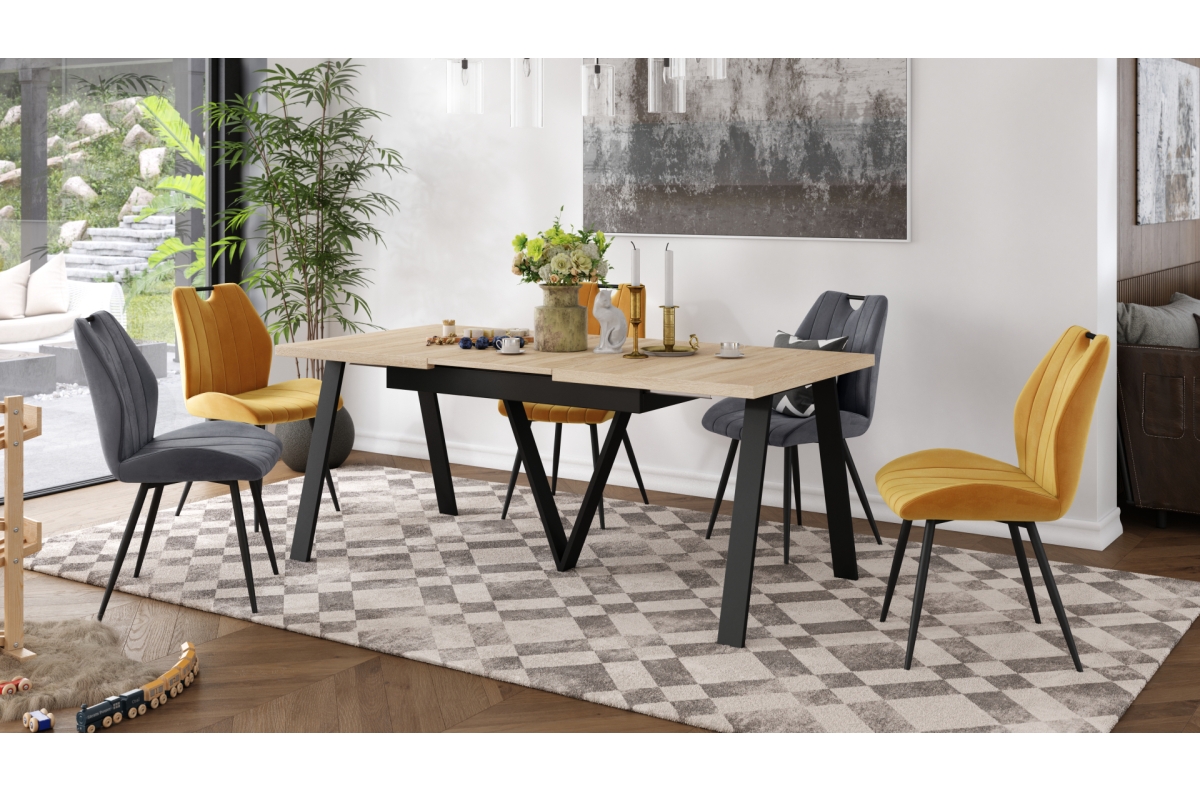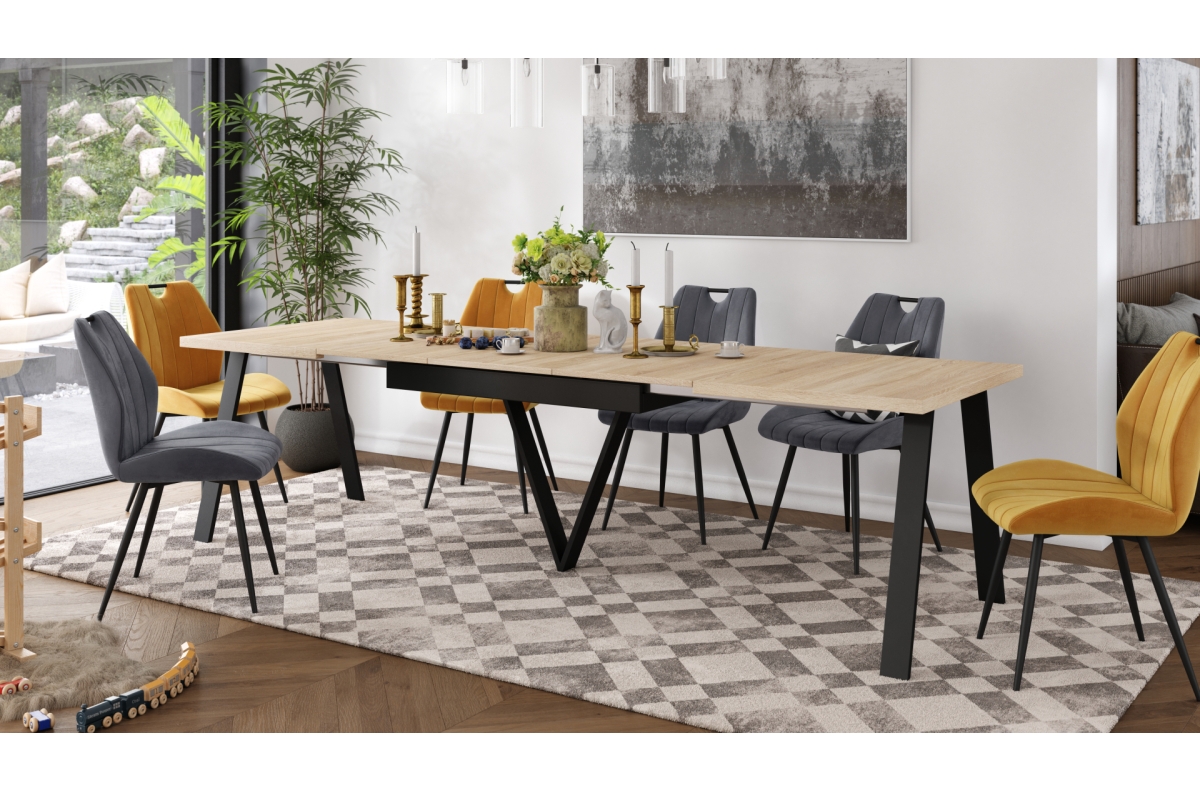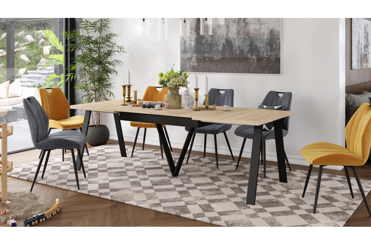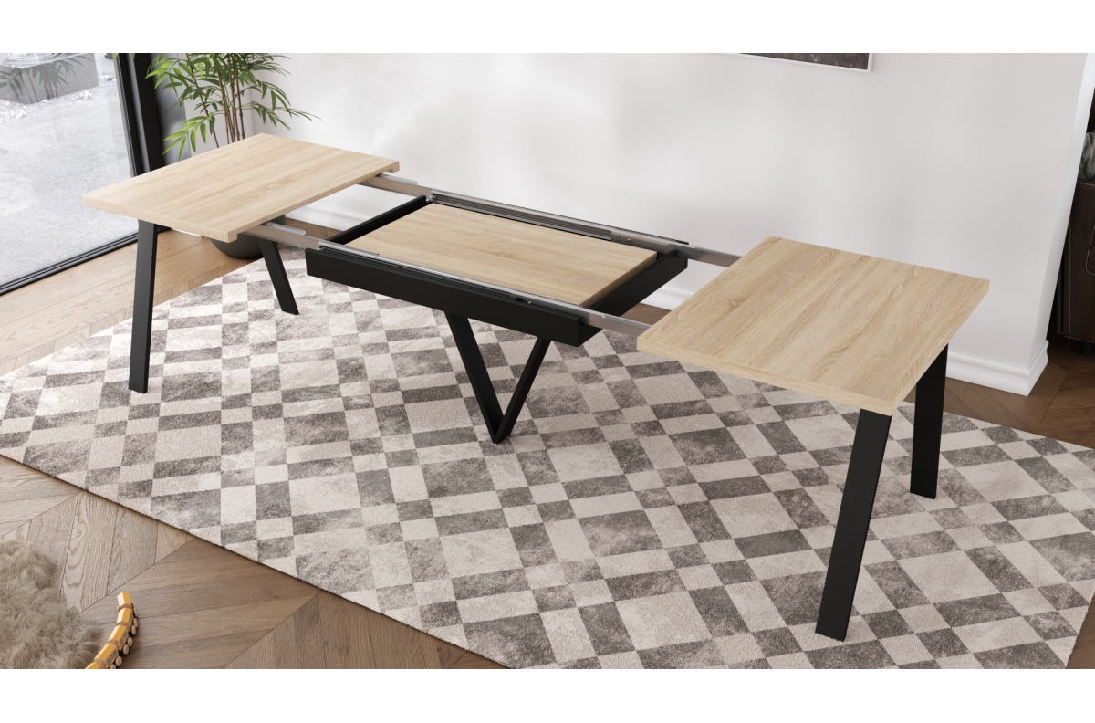 AVERY Sonoma ąžuolo/juodo dugno – PALĖPĖS/PRAMONINIO STIPRIKLIO STALAS SVETAINEI/VALGOMAJAM, IŠTRAUKIAMAS – 2 DYDŽIAI!