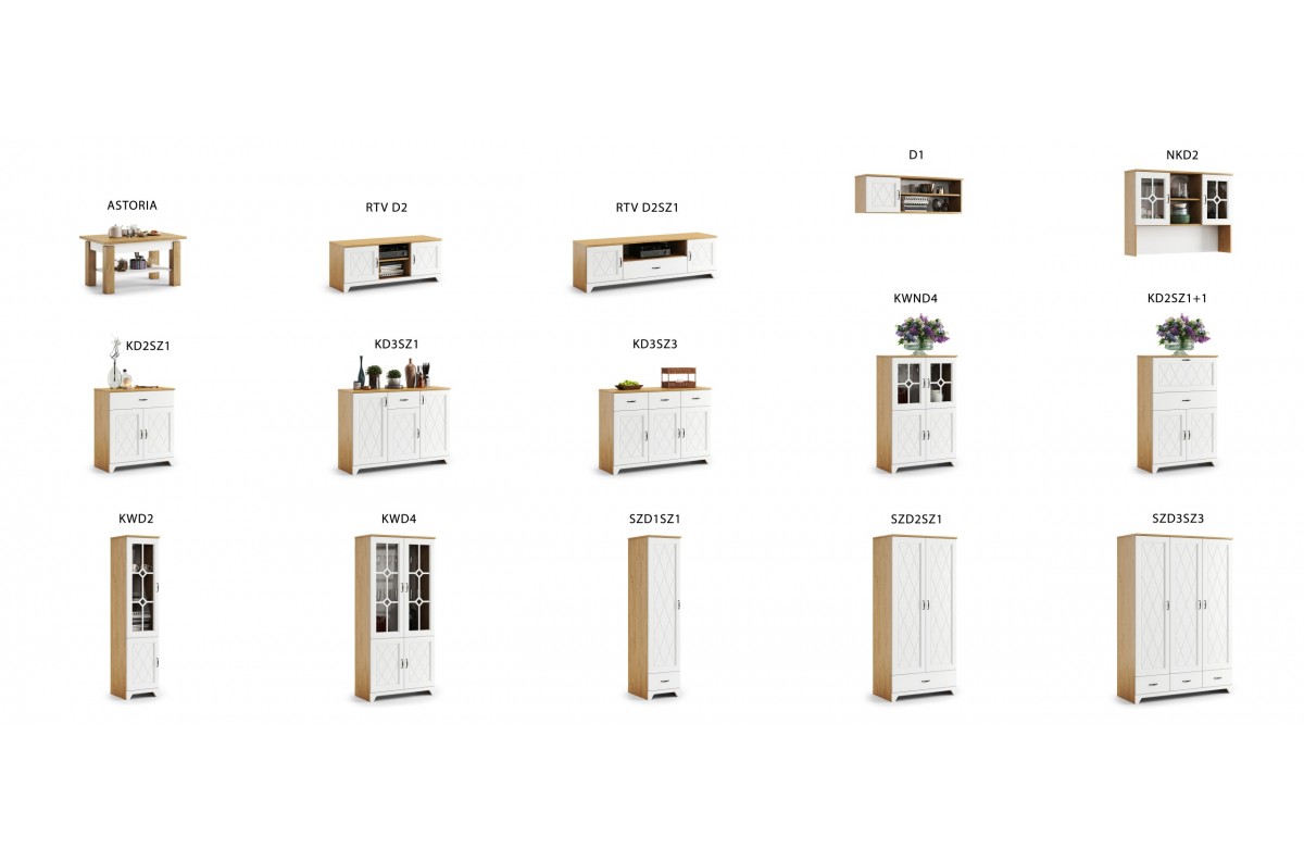 PROVENZA KD2SZ1+1 Baras, akmens ąžuolo spalvos/matinė balta – SPINTELĖ SU DIDELIU STALČIU, RETRO STILIUS KOMODOS