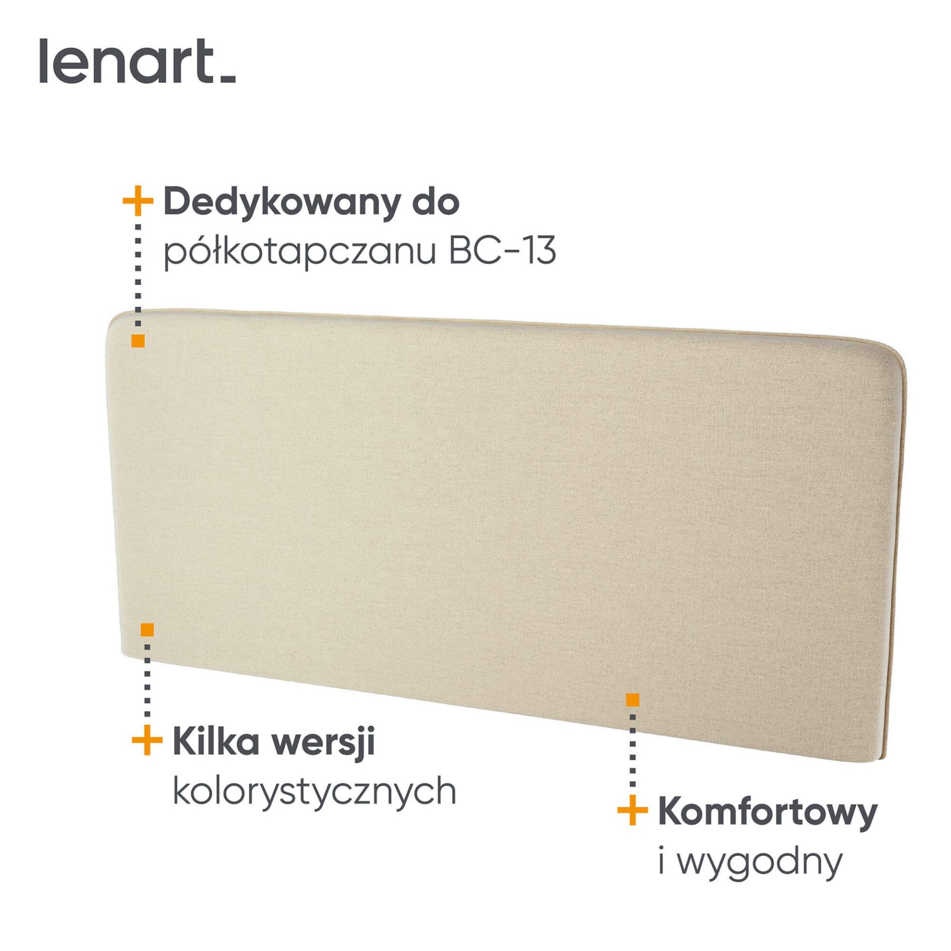 „Lenart BED CONCEPT BC-33“ – tai 180 cm pločio apmuštas lovos galvūgalis, skirtas BC-13 sieninei lovai, elegantiškos smėlio spalvos. Šis modernus priedas ne tik pagerina baldo estetiką, bet ir ženkliai padidina kasdienio naudojimo komfortą. „Lenart“ sukūrė šį modelį poroms, kurios naudoja dideles 180 x 200 cm lovas ir vertina komfortą bei funkcionalumą ribotose erdvėse. BC-33 galvūgalis puikiai tinka vakariniam skaitymui, darbui nešiojamuoju kompiuteriu ar televizoriaus žiūrėjimui, suteikiant minkštą ir patogią nugaros atramą. Smėlio spalvos apmušalai suteikia jaukumo ir elegancijos, o minimalistinis dizainas leidžia modeliui tinka tiek moderniam, tiek klasikiniam interjerui. Dėl paprasto surinkimo galvūgalį galima greitai ir lengvai pritvirtinti prie BC-13 sieninės lovos, sukuriant darnų ir funkcionalų komplektą.