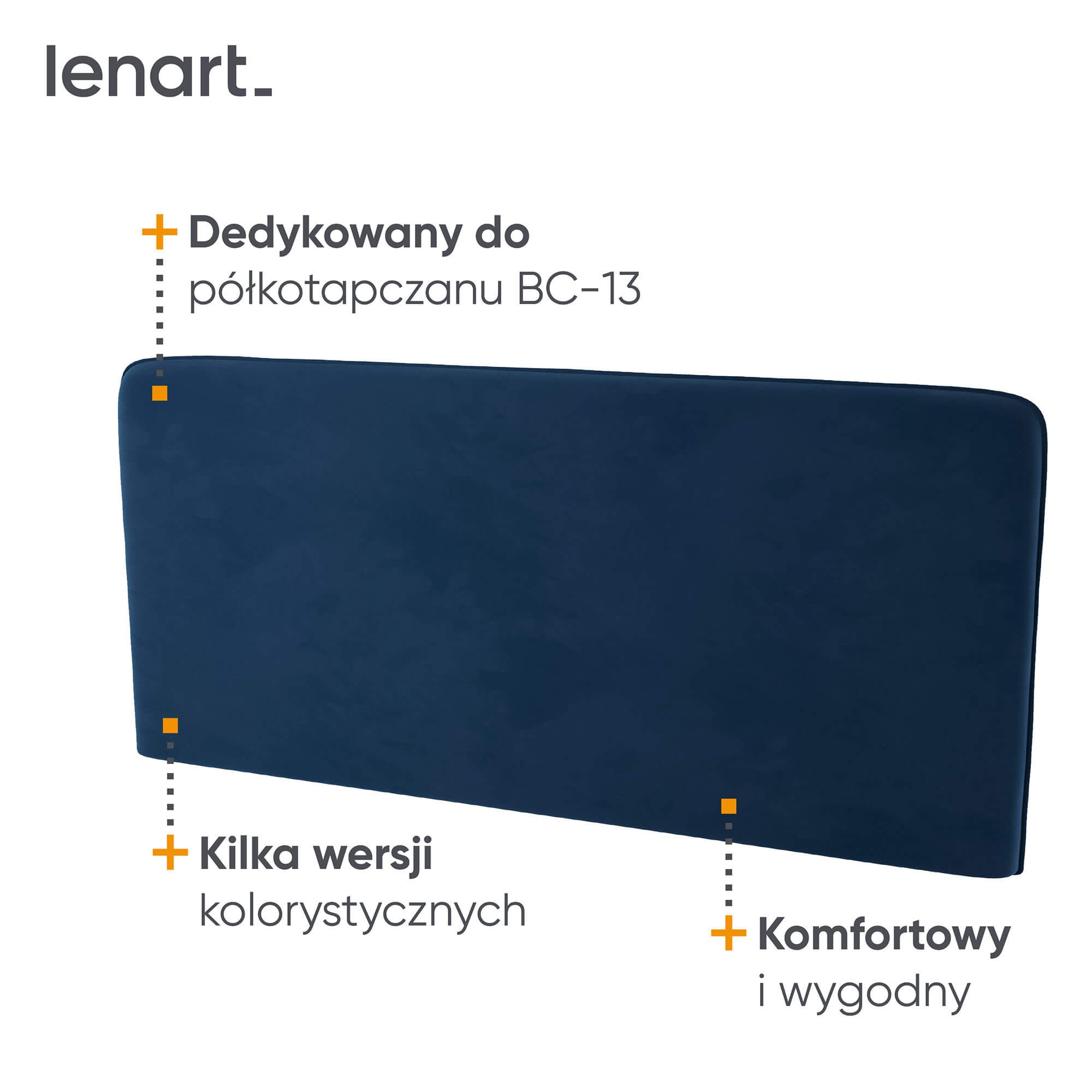„Lenart BED CONCEPT BC-33“ – tai apmuštas galvūgalis, skirtas BC-13 sieninei lovai su 180 cm pločio čiužiniu. Tai elegantiškas ir praktiškas elementas, padidinantis lovos komfortą ir suteikiantis jai modernumo. „Lenart“ sukūrė BC-33 modelį kaip funkcionalų ir stilingą BED CONCEPT kolekcijos papildymą. Galvos atrama aptraukta tamsiai mėlynu „Solo 263“ audiniu. Ši 100% PES medžiaga pasižymi maloniu liesti paviršiumi, patvarumu ir atsparumu kasdieniam naudojimui. Minkštas paminkštinimas užtikrina patogią galvos atramą skaitant, žiūrint televizorių ar dirbant nešiojamuoju kompiuteriu. Šis praktiškas ir estetiškas papildymas daro BC-13 sieninę lovą dar patogesnę ir elegantiškesnę.