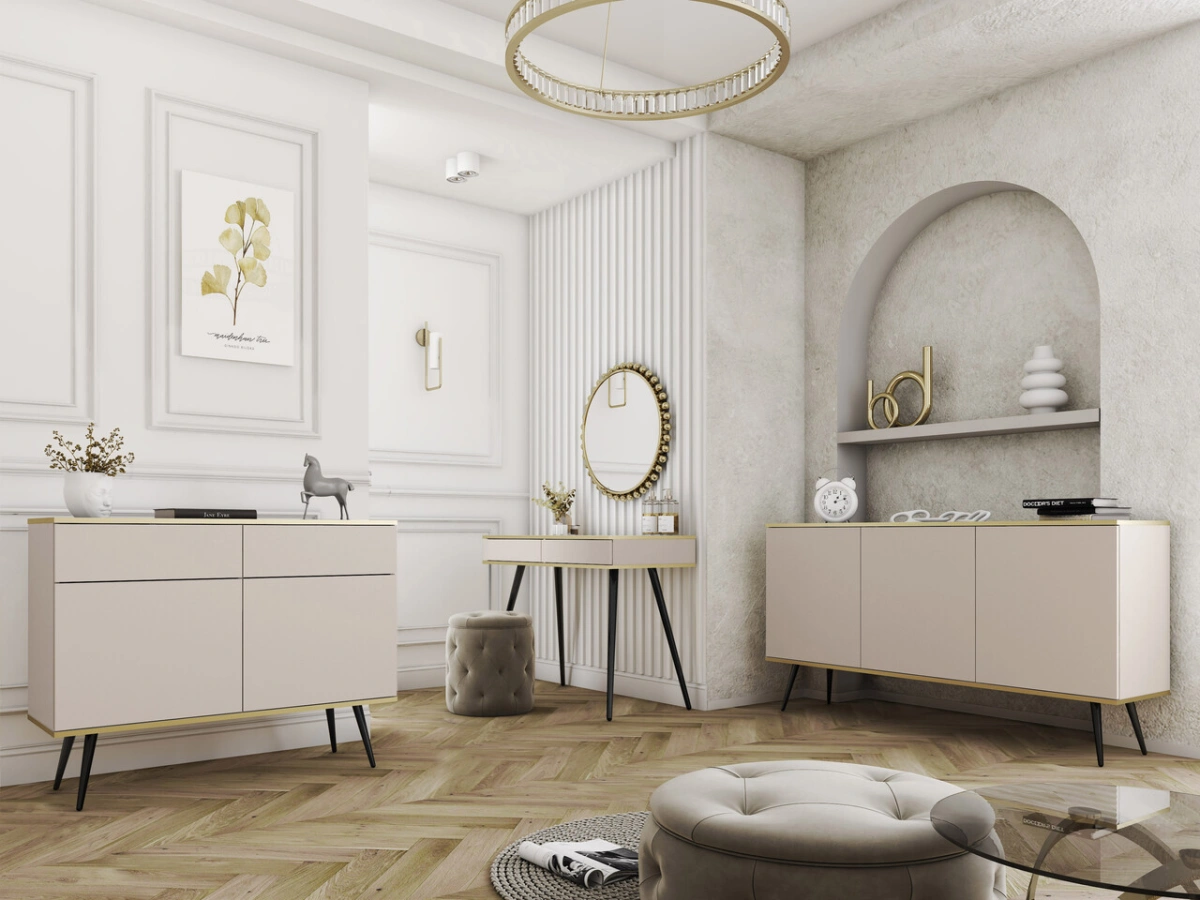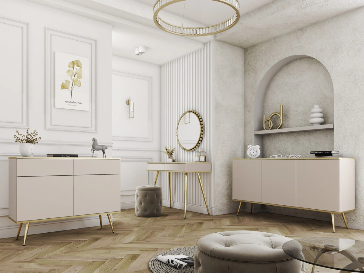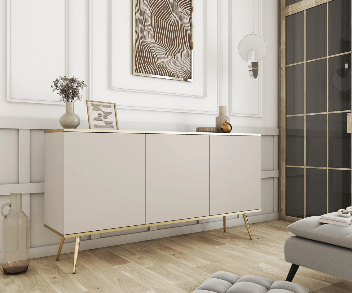 Smėlio spalvos komoda „Oro K160“ – trys spintelės.