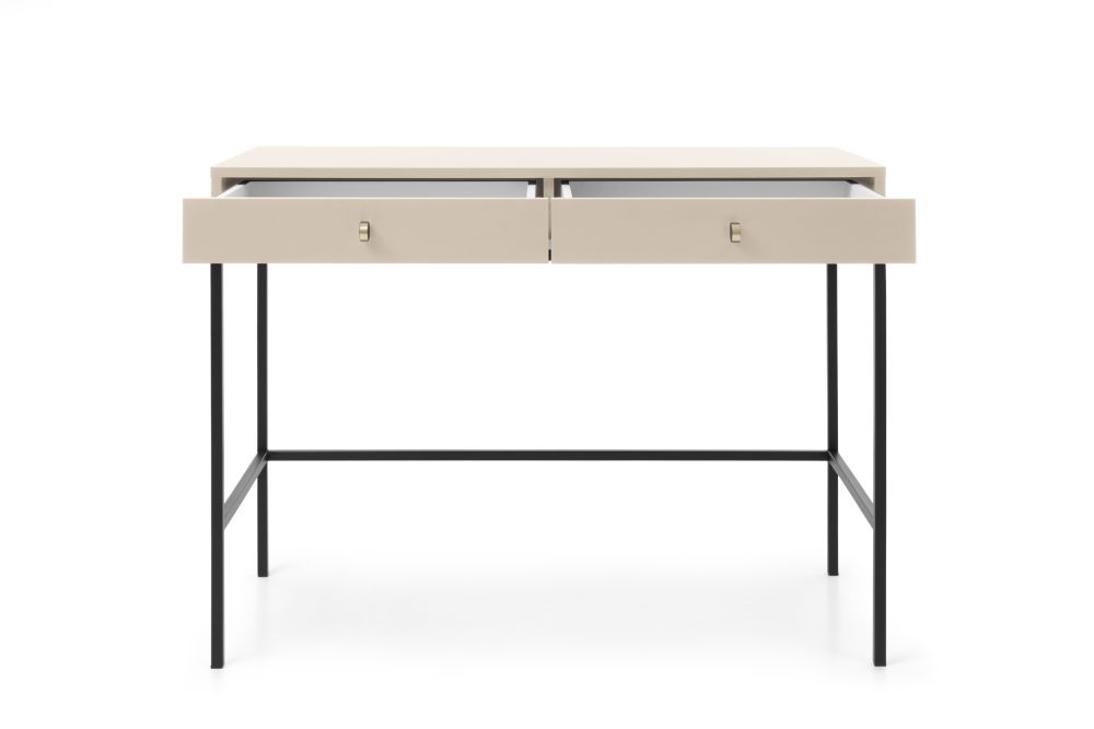 Smėlio spalvos „Mono MT104“ konsolinis tualetinis staliukas turi praktišką stalviršį ir du stalčius.