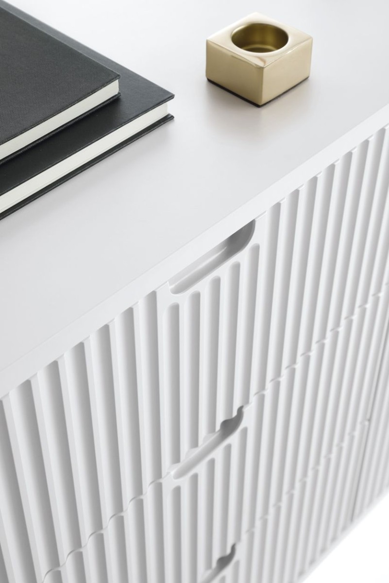 „Zova“ kolekciją sudaro: komodos, televizoriaus staliukas ir tualetinis staliukas. Kolekciją taip pat galima įsigyti kašmyro ir juodos spalvos – paieškos sistemoje įveskite „Zova“.