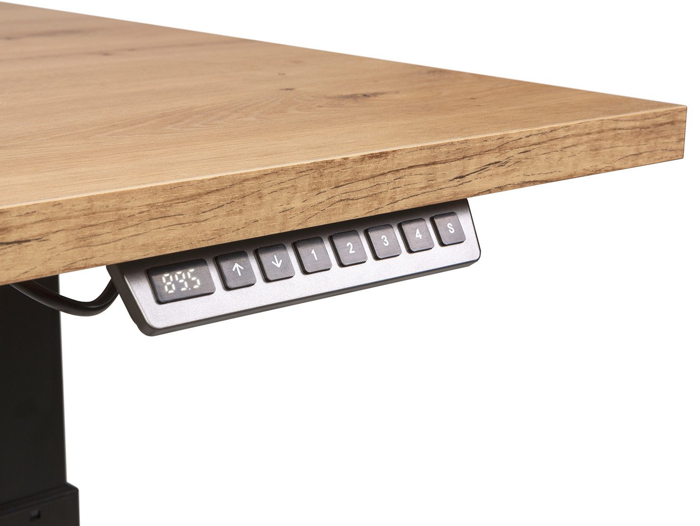 160 SPACE OFFICE elektrinis reguliuojamo aukščio stalas – ergonomika ir stilius viename. Šis stalas yra ne tik darbo vieta; tai ergonomiškas sprendimas, užtikrinantis jūsų komfortą, derinant funkcionalumą su minimalistiniu stiliumi. Jis puikiai dera prie modernaus, minimalistinio ar skandinaviško interjero, todėl yra puikus biurų, konferencijų salių, mokymo centrų ar net paauglio kambario papildymas. Storas, 22 milimetrų laminuotos plokštės stalviršis garantuoja patvarumą ir atsparumą pažeidimams, išlaikant estetišką išvaizdą. Elektrinis aukščio reguliavimas (nuo 72 iki 120 cm) yra novatoriškas sprendimas, leidžiantis pritaikyti stalą pagal individualius poreikius. Išsaugodami keturis aukščio lygius, galite greitai jį pritaikyti prie norimos padėties. Metalinės stalo kojelės ne tik suteikia modernumo, bet ir prisitaiko prie nelygių grindų. Šis praktiškas sprendimas garantuoja stabilumą net ir sudėtingoje reljefo padėtyje. Natūrali medžio stalviršio spalva puikiai kontrastuoja su juodomis kojelėmis, sukurdama harmoningą kompoziciją. 72–120 x 160 cm dydžio stalas pasižymi proporcijomis, kurios užtikrina ne tik patogią darbo vietą, bet ir estetišką dizainą. 160 cm pločio elektra reguliuojamo aukščio stalas yra ne tik efektyvaus darbo įrankis; tai elementas, suteikiantis bet kuriai biuro erdvei komforto ir stiliaus. Kartu su kitais biuro baldais ir moderniais akcentais jis sukuria darnią ir elegantišką aplinką. Pridėkite tinkamą biuro kėdę ir ji taps visaverte darbo vieta, pritaikyta jūsų individualiems poreikiams.