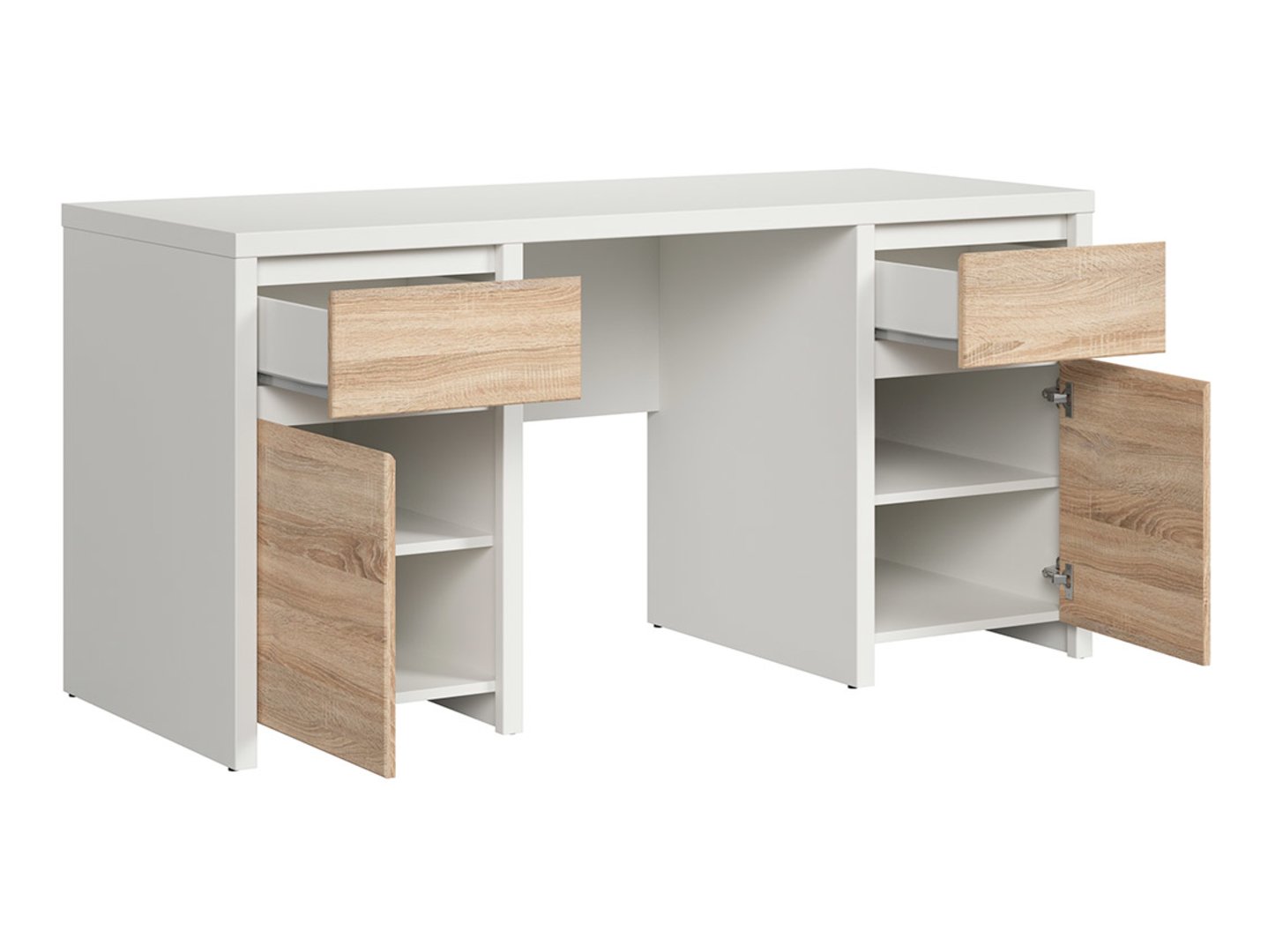 Prekės kodas S128-BIU2D2S/160-BI/DSO Simbolis ZM EAN Ilgis 160 cm Plotis 65 cm Aukštis 77 cm Kolekcija Kaspian Spalva balta/sonoma ąžuolas Gaubtas šviesios medienos Stilius modernus Durelių skaičius 2 durų Stalčių skaičius 2 stalčiai Rankena be rankenėlių Gamintojas Juoda Raudona Balta Baldo tipas Rašomieji stalai PVM 23% EAN 5906123882682