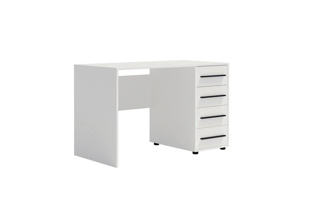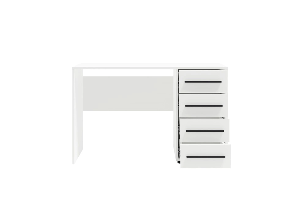 „Maxione“ rašomasis stalas, 120 cm, baltas, modernus, universalaus dizaino stalas su stalčiais, puikiai tiks paauglio kambaryje ar biure
