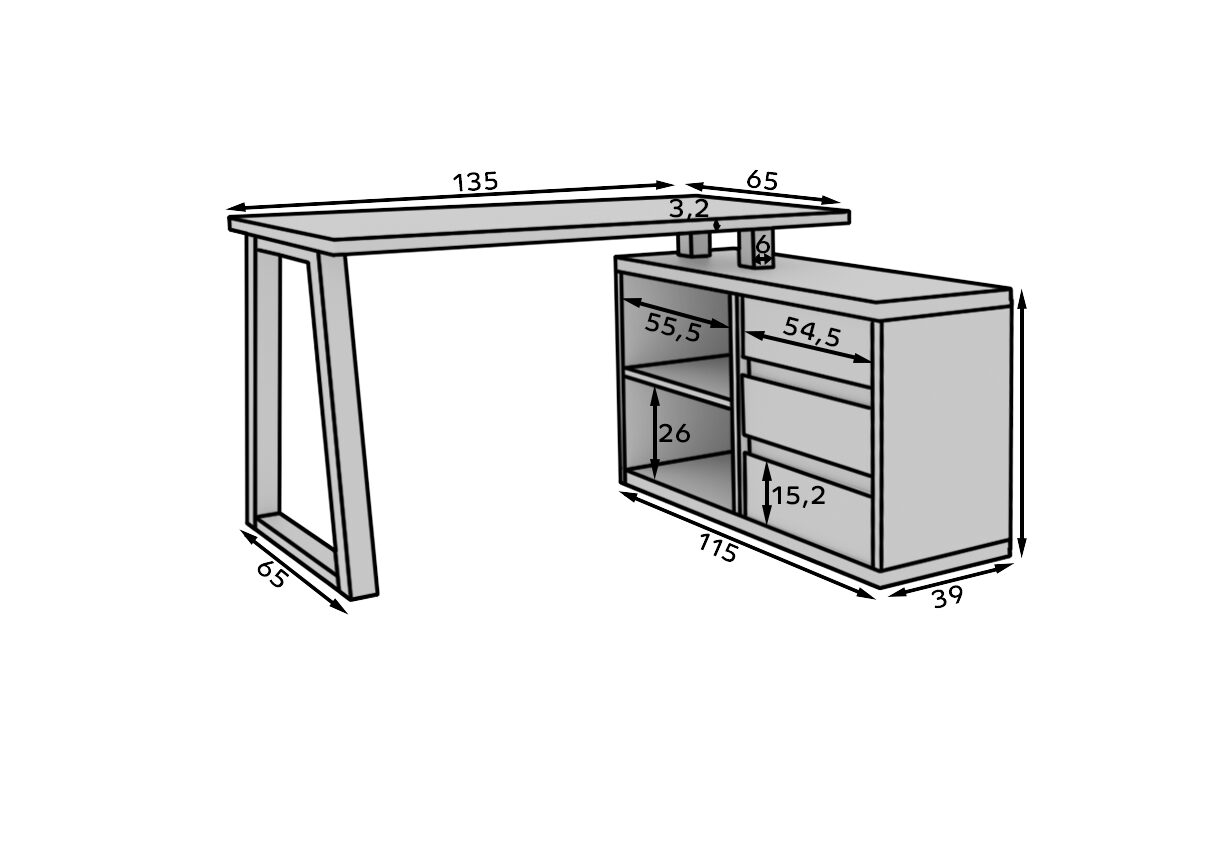 Kampinis stalas IWO II puikiai tinka paauglio kambariui, biurui ar studijai. Dėl kampinio dizaino jis tilps net ir mažose erdvėse. Stalas turi tris stalčius ir erdvią lentyną, todėl jame yra daug vietos biuro reikmenims laikyti. IWO II stalas yra lengvai naudojamas ir universalus baldas, kuris tiks prie daugumos interjerų.