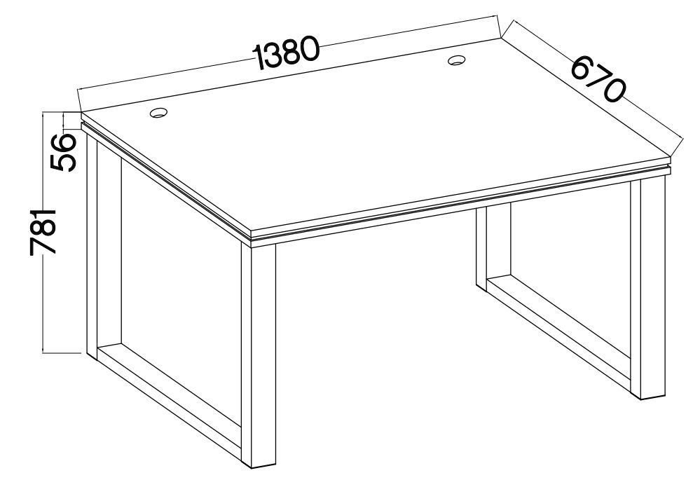 Kiekvieno stalo viršuje yra skylės ir laidų tvarkymo angos.