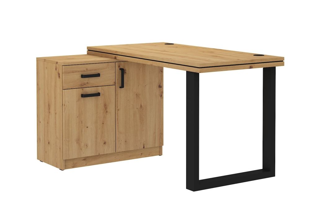 Aukštas rašomasis stalas „Malta 140“ su komoda – stalas turi pastorintą stalviršį, metalinį pagrindą, dvi spinteles ir stalčių.