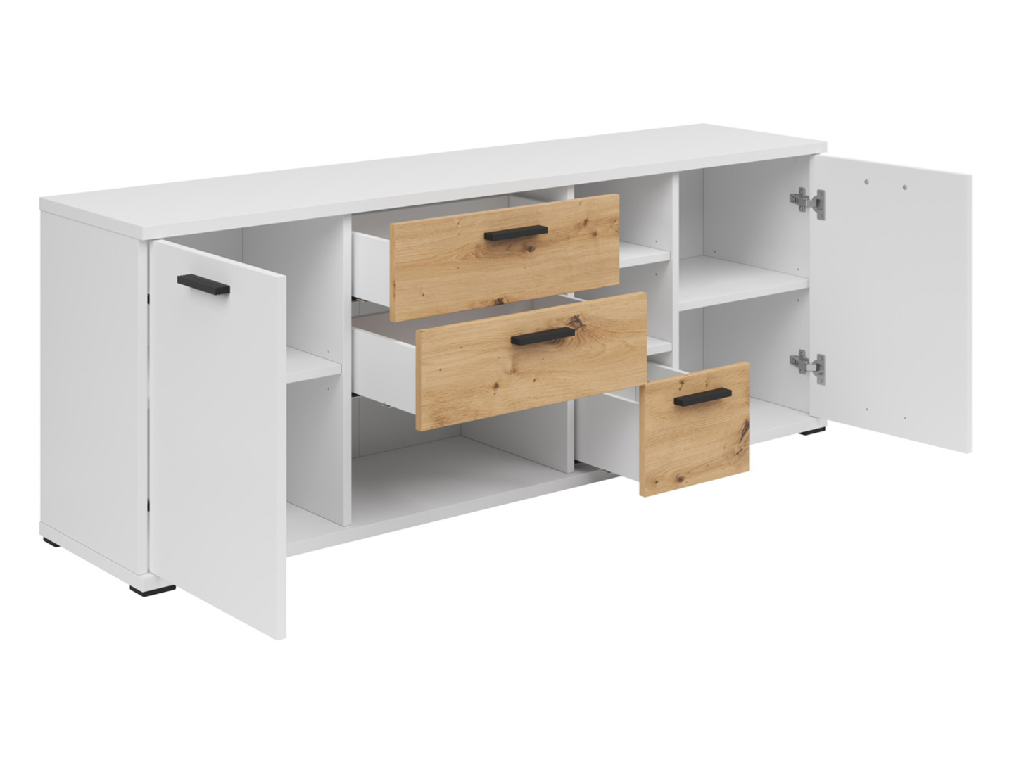 Prekės kodas S595-BIU_150_A-DASN/BI/GF Ilgis 150 cm Plotis 60 cm Aukštis 75 cm Kolekcija „Homeland“ Spalva balta/artisan ąžuolas Gaubtas šviesi mediena Stilius modernus Medžiaga laminatas Durelių skaičius 2 durų Stalčių skaičius 3 stalčiai Rankena su rankenėlėmis Gamintojas Juoda Raudona Balta Baldo tipas Rašomieji stalai PVM 23% EAN 5906123037174