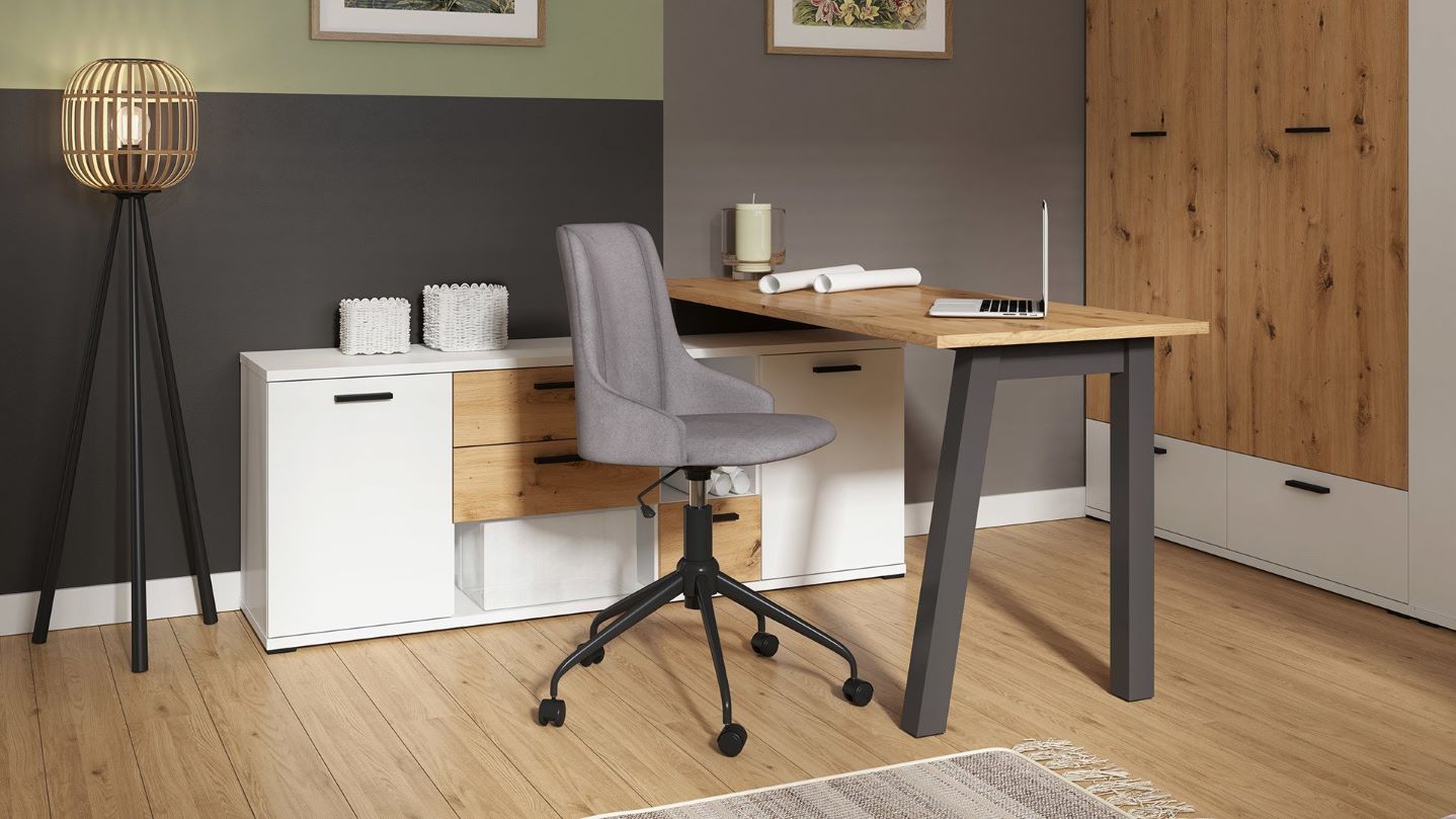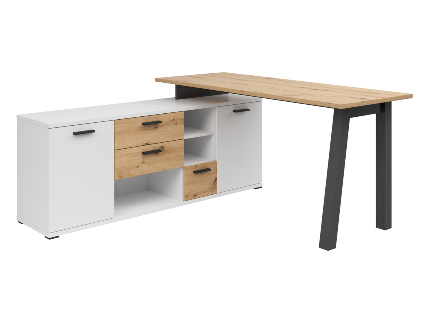 „Homeland“ rašomasis stalas su trimis stalčiais ir komoda, 150 cm, „Artisan“, ąžuolas/balta/grafitas