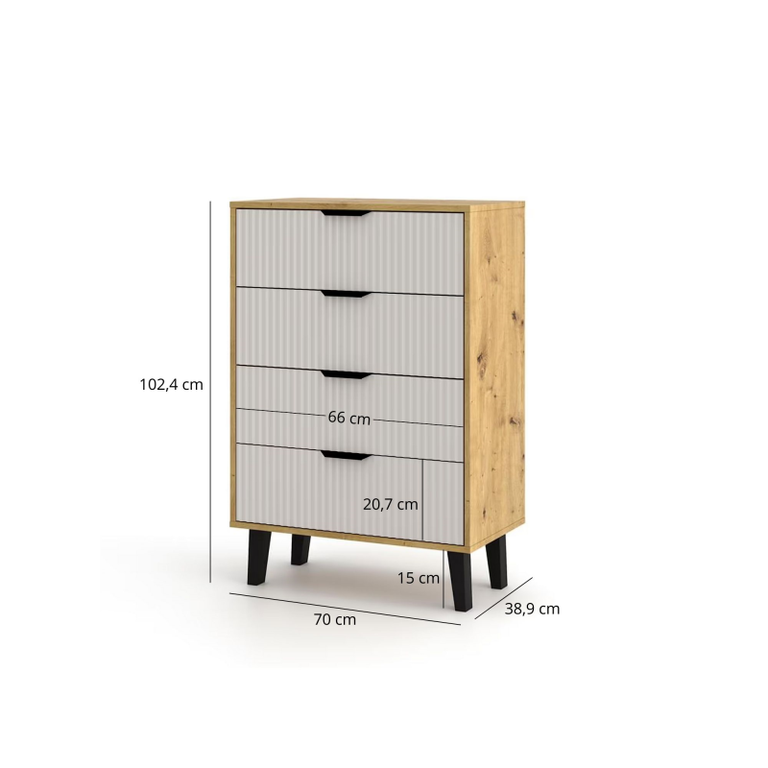 Kolekcija: Borg Duo Surinkti baldai: Ne Plotis: 70 Aukštis: 102,4 Gylis: 38,8 Stalčių skaičius: 4