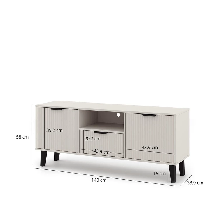 Kolekcija: Borg Duo Surinkta: Ne Plotis: 140 Aukštis: 55 Gylis: 38,8 Durų skaičius: 2 Stalčių skaičius: 1 BORG DUO 2D1S TV spintelė – Kašmyro spalvos