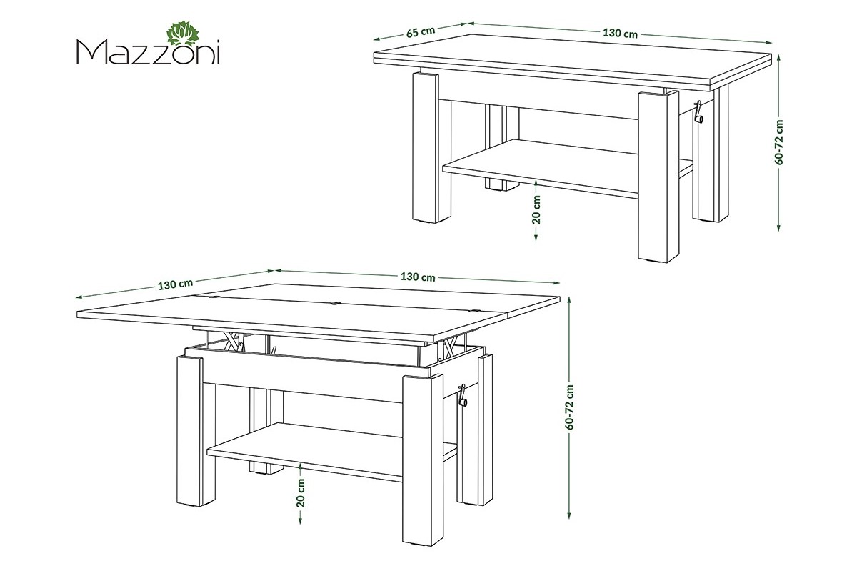 PLOTIS 130 cm, GYLIS 65 cm / 130 cm, REGULIUOJAMAS AUKŠTIS 60–72 cm, MEDŽIAGOS Medžio drožlių plokštė, FUNKCIJA Ištraukiamas stalviršis, PAVIRŠIUS Matinis, STILIUS Klasikinis, SVORIS SU PAKUOTE 55 kg