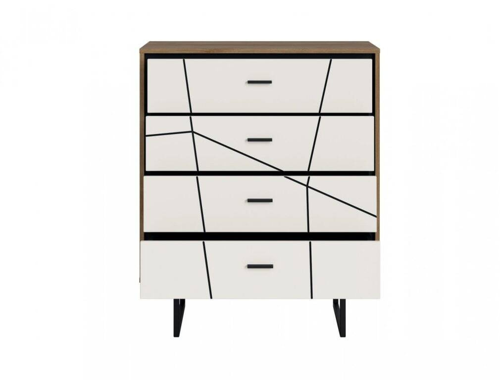 Brolo BROK07 – 4 stalčių komoda, Catania ąžuolas/juodas perlas/balta