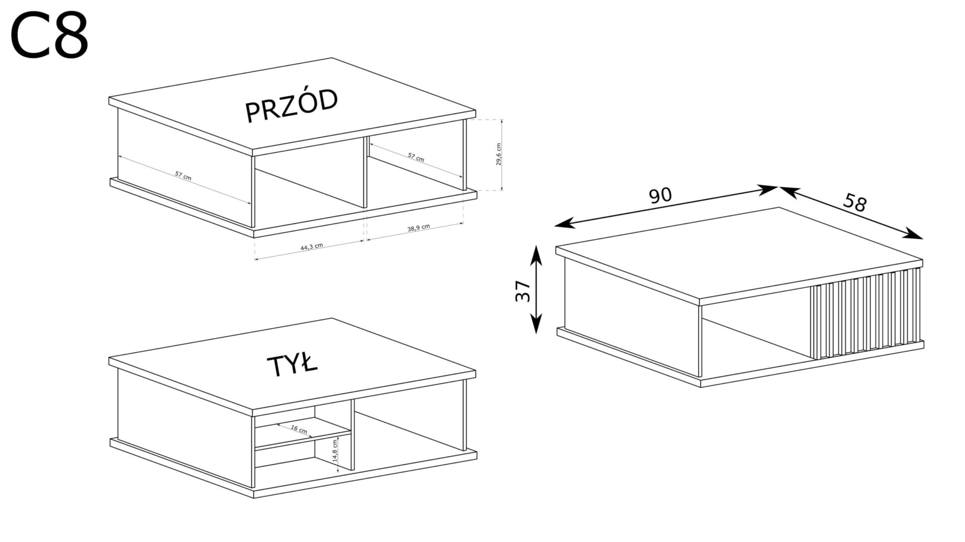Kavos staliukas CALI-8 – savo išvaizda patenkins ne tik minimalistinių formų mėgėjus, bet ir tuos, kurie vertina eleganciją. Pagamintas iš aukštos kokybės laminuotos plokštės, jis yra puikus išskirtinio dizaino ir patvarumo derinys, todėl puikiai tiks jūsų svetainei ar terasai. 90 cm plotis ir 58 cm gylis paverčia CALI-8 puikia vieta mėgstamiems gėrimams ar užkandžiams, kviečiant svečius ar tiesiog atsipalaiduojant su knyga. Įdomi ir kompaktiška forma reiškia, kad nepaisant dydžio, jis išlaiko erdvės pojūtį, suteikdamas harmonijos bet kokiam kambariui. Be to, korpuso ir priekinės dalies spalva, pasirinkta „Artisan“ atspalviu iš „Egger“ kolekcijos, sukuria darnią visumą, kuri lengvai dera prie įvairių interjero stilių. Šis staliukas gali pasigirti ne tik estetika. CALI-8 buvo sukurtas galvojant apie kasdienį naudojimą. Jo pagalba galite lengvai laikyti visus būtiniausius aksesuarus dviejose lentynose, o apgalvotas stalčius, papuoštas lamelėmis juodame fone, suteiks bet kokiam interjerui modernumo. Tai leis lengvai palaikyti tvarką ir kartu suteikti stilingą akcentą jūsų aplinkai.