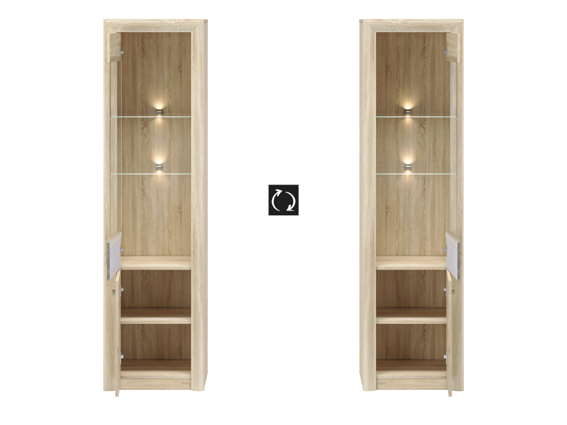 Vitrinos durys pagamintos iš stiklo ir aukštos kokybės baldų plokštės. Priklausomai nuo interjero dizaino, joje galima laikyti knygas, suvenyrus, stalo įrankius ir daug daugiau.