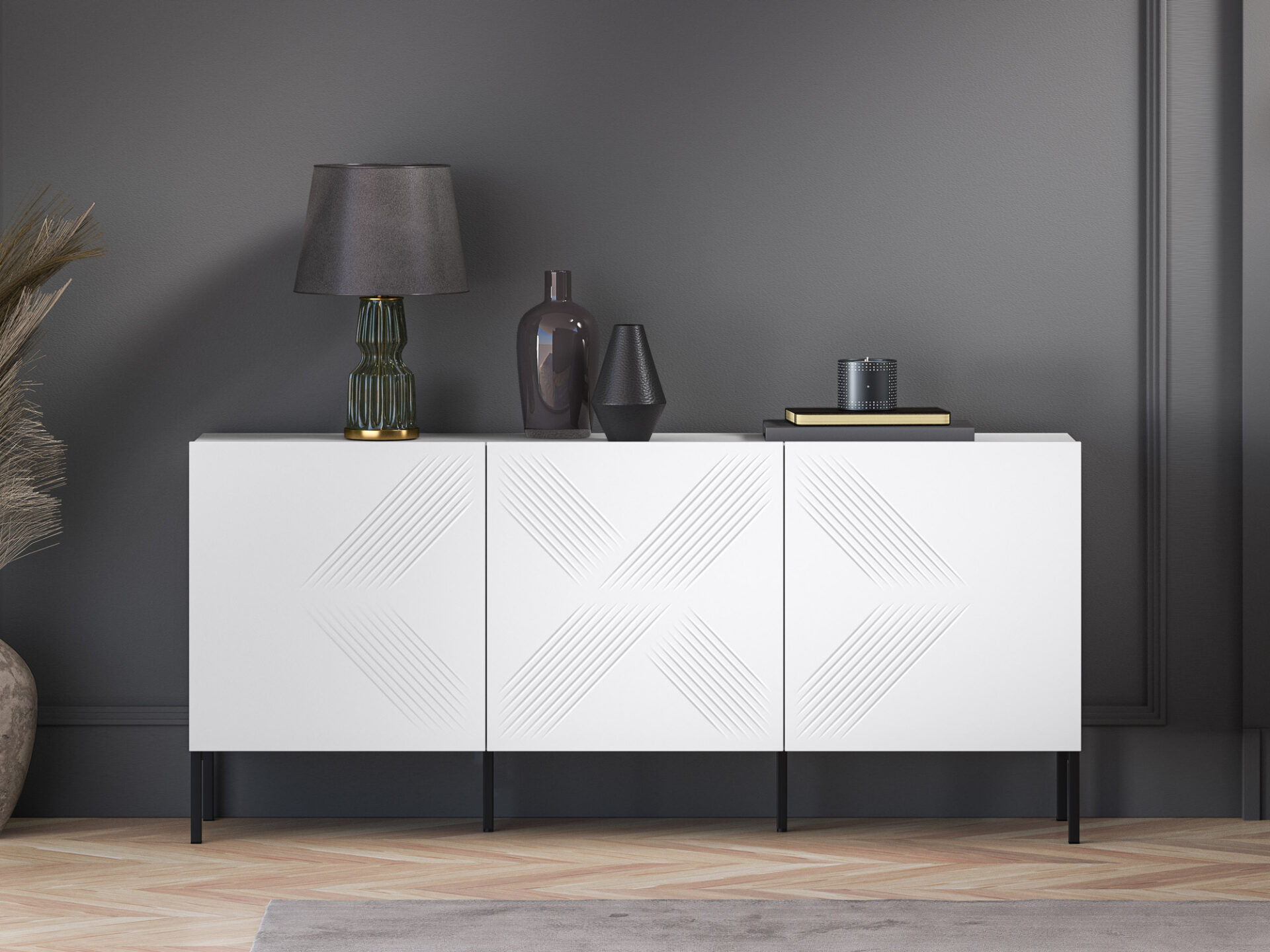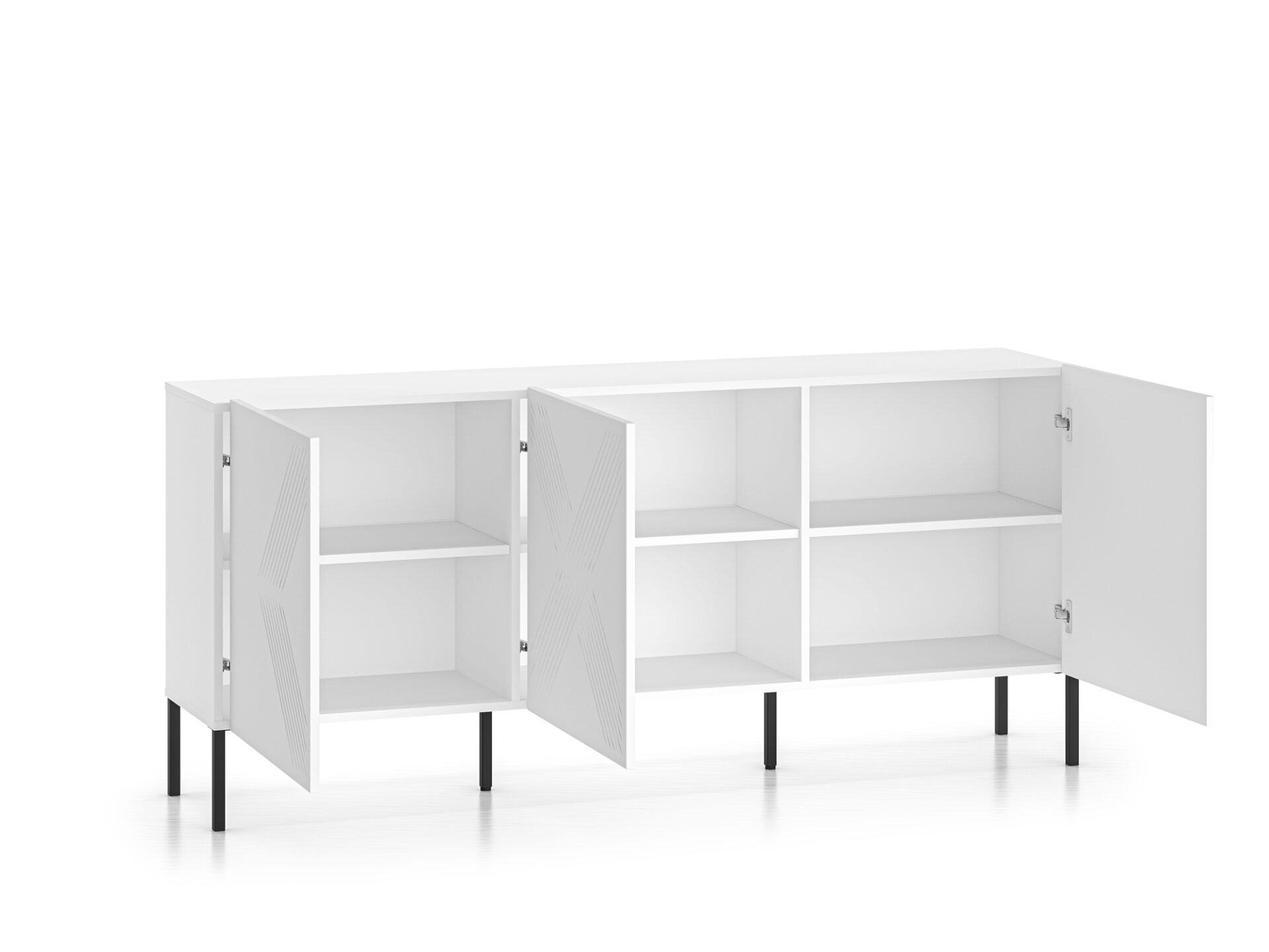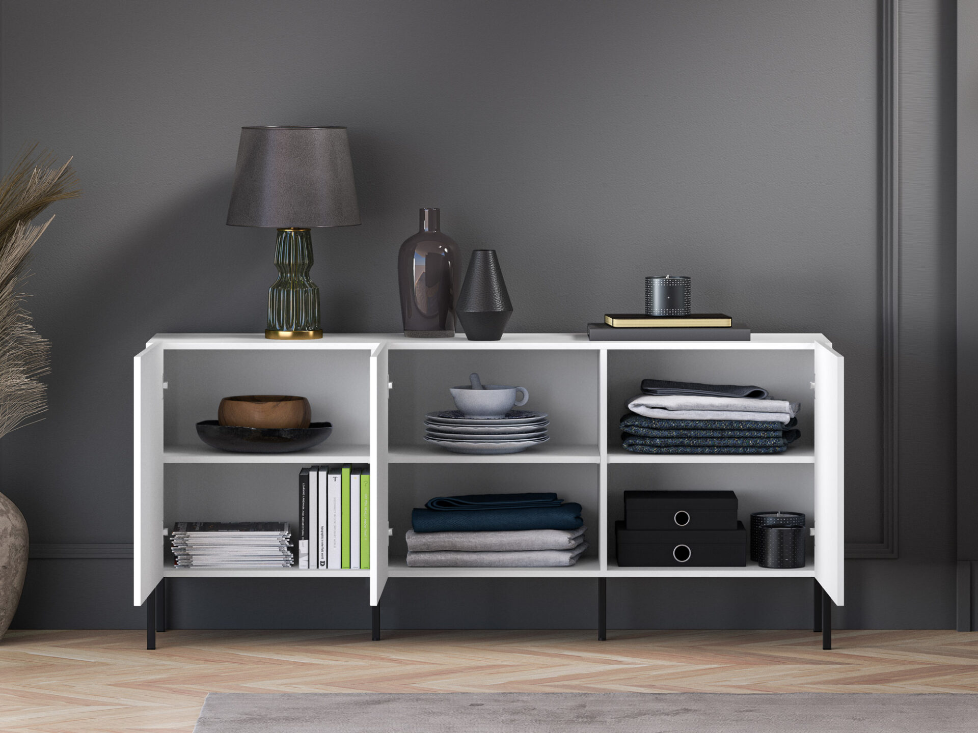 Komoda „Clearing 02“ – tai baldas, puikiai tinkantis stalo įrankiams, staltiesėms ir kitiems namų tekstilės gaminiams laikyti. Šešios erdvios nišos leidžia tvarkingai susidėti daugybę namų apyvokos daiktų. Be to, didelis stalviršis leidžia laikyti mėgstamas nuotraukas, vazas ar atostogų suvenyrus. Be funkcionalumo, pagrindinis „Clearing“ kolekcijos baldų privalumas yra jų dizainas. Paprasti, balti fasadai, pagaminti iš itin patvarios MDF plokštės, paryškinti unikaliais frezavimais. Minimalistinė forma su įdomiu akcentu sukuria modernų įspūdį šiuolaikinei svetainei ar miegamajam. Juodos metalinės kojelės suteikia komodai charakterio ir kartu su likusia balto korpuso dalimi sukuria klasikinį ir elegantišką spalvų kontrastą.