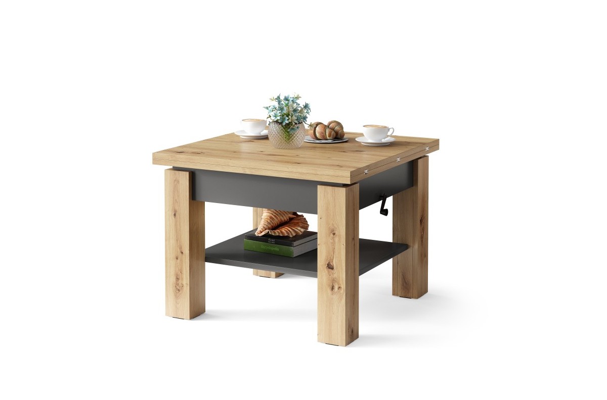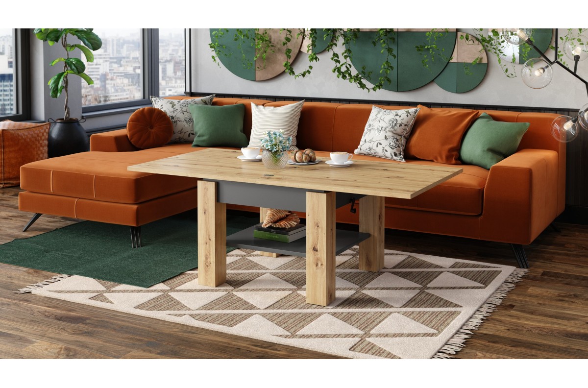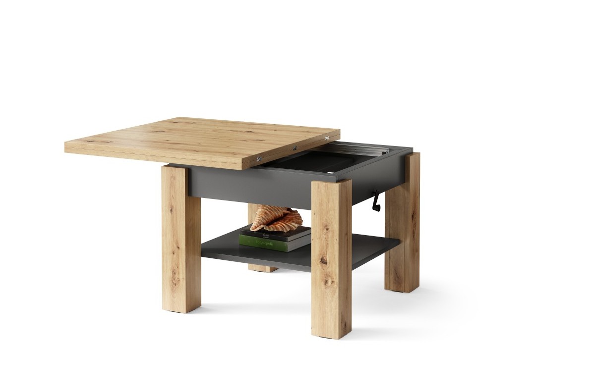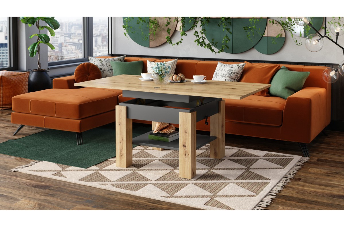 CLEO Artisan Oak/Anthracite – Kavos staliukas su ištraukiamu ir pakeliamu stalviršiu